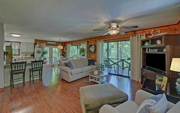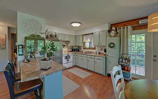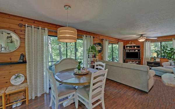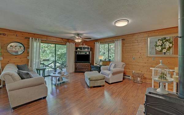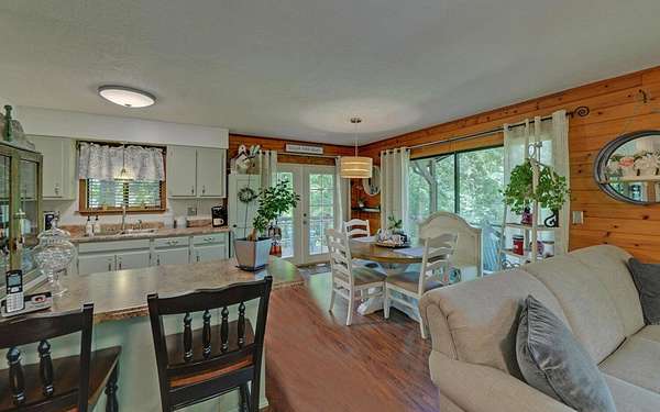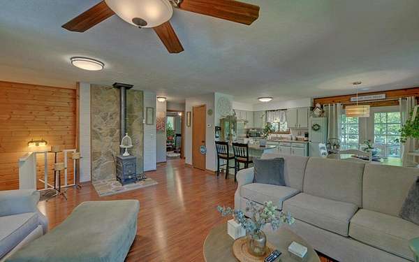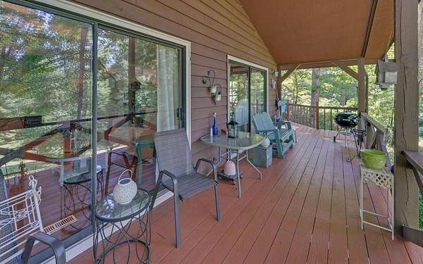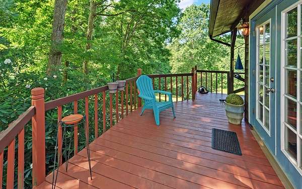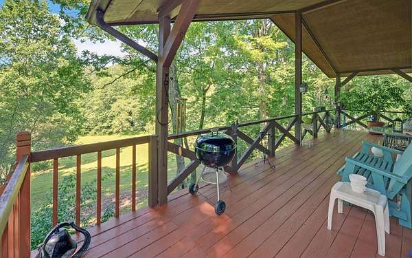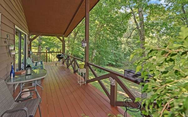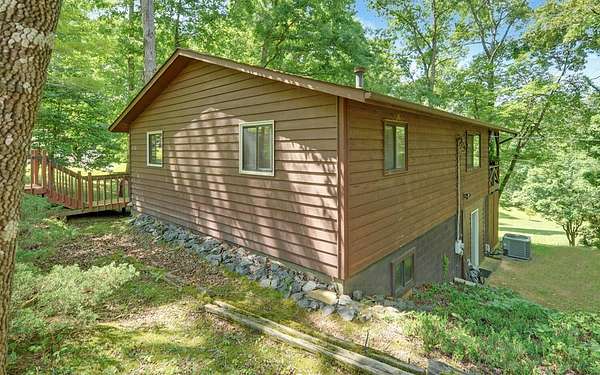 Tired of tight lots and rules? This 2-acre ranch offers freedom, privacy, and room to breathe. Start your mornings on the covered porch with coffee in hand, a gentle branch nearby, and space for pets, gardens, or play. Inside, the updated kitchen with breakfast bar is perfect for casual meals and easy entertaining, while French doors connect seamlessly to the deck. The great room's wood-burning stove brings a warm welcome after a long day. The primary bedroom is on the main floor, and thoughtful upgrades like central air and double-pane windows keep life comfortable year-round. A finished walk-out basement adds a family room, bonus room, full bath, and laundry, ideal for guests, hobbies, or work-from-home flexibility. Outside, a lower patio leads to a manicured lawn, and the private well is shared with just one neighbor. Located minutes from scenic drives, trails, local dining in Murphy or Andrews, and Harrah's casino and entertainment.
