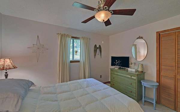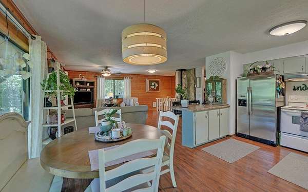 - Ceiling Fan(s), Insulation, Kitchen Island, Paneling, Primary On Main, Smoke Detector, Tile Shower/Tub, Wood Walls