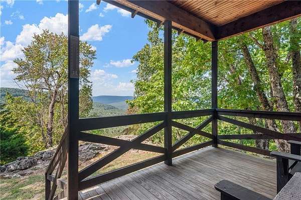 Looking for end of road privacy, peace and tranquility? You will find it here. Skyfall sits on 378 acres of mountain top views, forest, bluffs, trails, waterfalls and creeks. This is one of the most unique properties in Newton County. Built in 2021, it features a main house, guest cabin, cedar barn with a bunk room upstairs, raised garden and shed, an outdoor kitchen (under construction), an equipment shed for all the toys and a back-up generator. Built on the top of the ridge, overlooking the Murray Valley and Little Buffalo River. Natural rock fireplaces, patios, and firepit along with cedar siding make this a true show place. The interiors are full of unique custom built-ins, cabinetry, drapery, high end appliances and more. No expense has been spared. You may feel like you are far away from civilization, but you are only 13 miles (26 minutes) from the quaint town of Jasper. If you are looking for quality hunting land, you will find deer, turkey, bear, wild hogs and more. See MLS remarks for more info