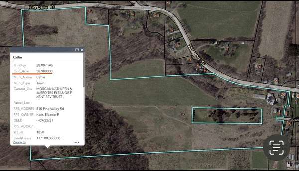 This is your chance to own an incredible 102 acres parcel in the sought-after Horseheads School District. With road frontage at three seperate access points, this property offers felxiblilty, convenience, and boundless potential. Breathtaking views that must be seen! Open fields for farming, recreation, or building your dream home. Mature woods perfect for hunting and for future timber value. Existing barns and outbuildings ready for restoration, hobby farming or storage. Whether you're a developer, farmer, investor or just someone looking for space to stretch to and enjoy nature-this property has it all!