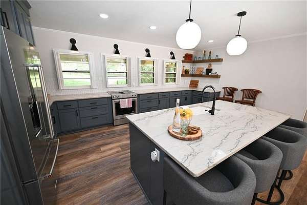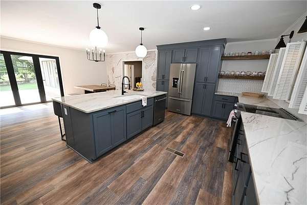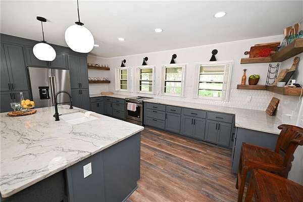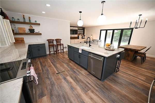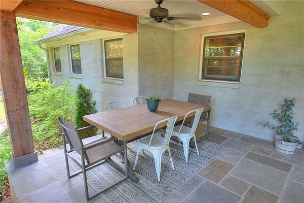 TWO ACRES just ONE MILE from Auburn University & downtown Auburn! ALL ONE LEVEL! Brick ranch home has been beautifully renovated, both inside & out. Grounds are fully fenced w/ gated entry. Stunning outdoor spaces include enormous covered front porch + open back deck. Fabulous open-concept living/dining/kitchen is perfect for gatherings, but there are also plenty of flex rooms for activities & extra space. Chef's kitchen is beyond gorgeous, w/ custom cabinetry, updated Kitchenaid Pro-Line appliances, & exquisite natural stone countertops. A wall of glass doors leading out to the deck adds to the airy ambience & can be opened to seamlessly integrate outdoor & indoor entertaining spaces. Incredible sunroom boasts floor-to-ceiling windows & beautiful terracotta tile floors original to the home. Relaxing primary suite includes sitting area/office w/ tons of windows! Huge walk-in workshop/storage room under the house. SO MUCH POTENTIAL! Easy access to local schools, Kroger, Starbucks, & much, much more!