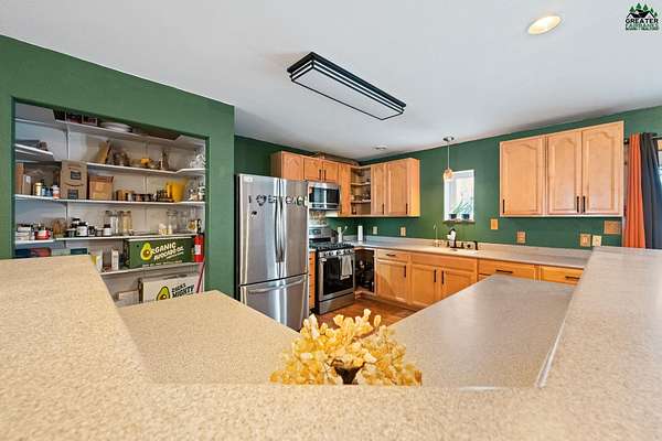 Welcome to 510 Sofie Court, a beautifully crafted home tucked deep in the peaceful Two Rivers area along Chena Hot Springs Road. Surrounded by more than four acres of natural Alaskan landscape, this property offers the perfect combination of privacy, comfort, and wildlife viewing. The three-bedroom, two-bathroom home with a two-car garage was built in 2006 with quality and efficiency in mind, featuring double wall construction and a five-star energy rating at the time of build. Inside, you'll find an inviting open-concept layout with large windows that fill the space with natural light and frame the wooded views. The kitchen is equipped with stainless steel appliances and connects seamlessly to the dining and living areas, creating an easy flow for both relaxing and entertaining. A pellet stove provides cozy supplemental heat during the winter months, while radiant efficiency keeps the home warm throughout. Step outside and enjoy direct access to public land and trails for hiking, riding, or snowmachining, all just steps from your back door. On clear nights, you'll have a front-row seat to the northern lights thanks to minimal light pollution in the area. Located only about twenty minutes from Fairbanks, this property offers true Alaskan living without sacrificing convenience. 510 Sofie Court is a rare find where comfort, craftsmanship, and nature come together to create the perfect retreat.
