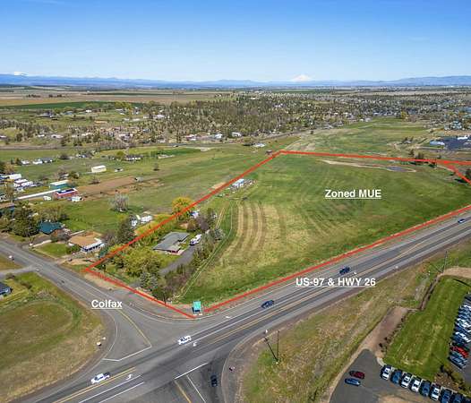 Est $13,999/moATTENTION INVESTORS! 16.43 Ac of MUE with amazing location at the corner of Colfax and US 97 and hwy 26 with an average daily vehicle count of over 17,000. Annexed into the city of Madras and sewer main near the property line, This property is a huge opportunity. Property zoning MUE allows Large retail complex or Travel Center, or Hotel or light manufacturing or vehicle dealership or ? Total of 3,465sq.ft. and includes the following: 2,217sq.ft. house (5 bed 3 bath with mother in-law quarters), and 1,248sq.ft. Shop. Call your agent for the backup package and showing. Property is currently being used for residential. Main Zoning is MUE. Seller also has package deal available see listing 1820 US-97