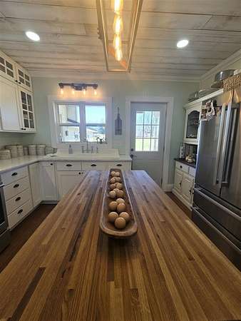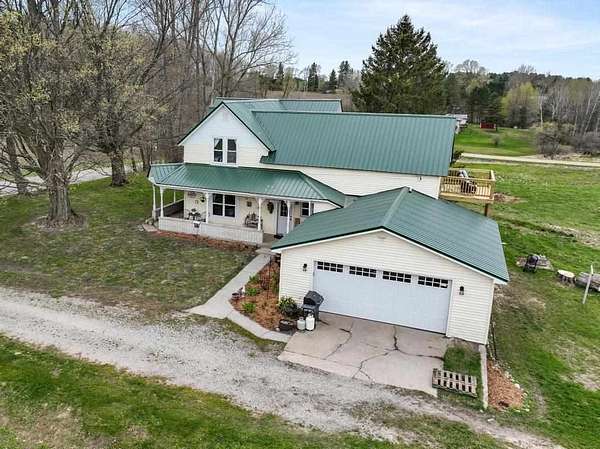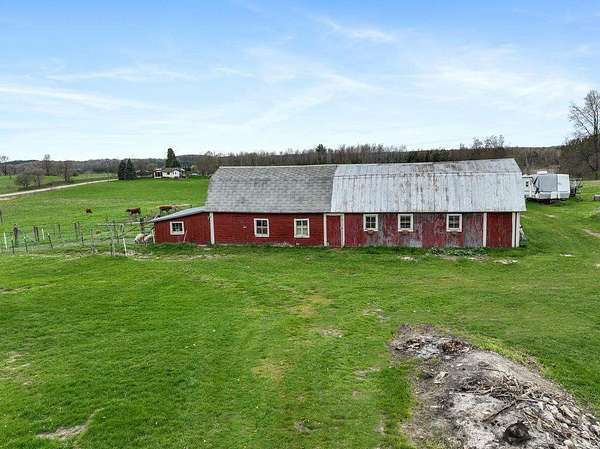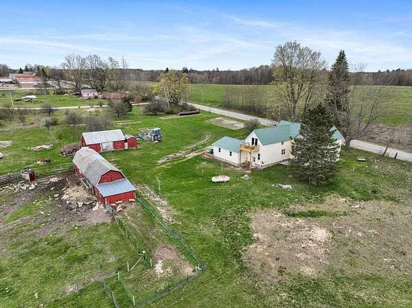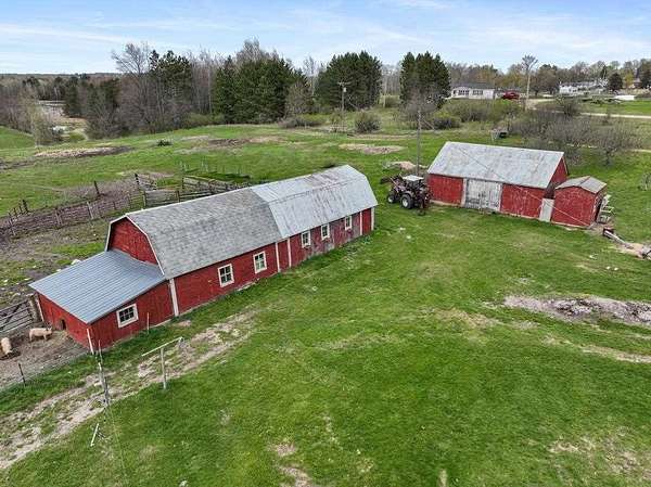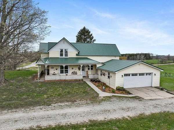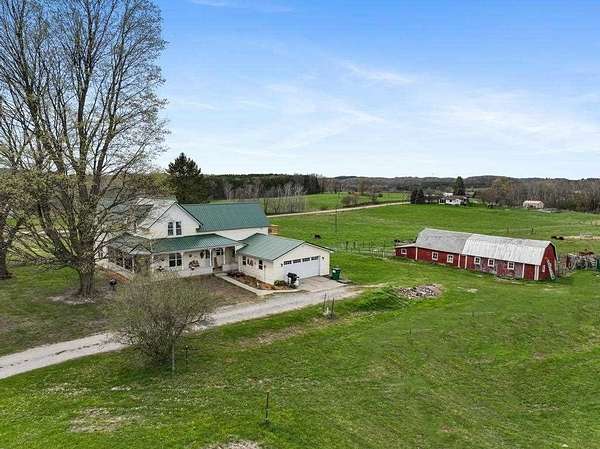 Taking back up offers! Seller has a recent appraisal by Quadrant appraisers. Welcome to this stunning Joanna Gaines-inspired classic farmhouse, where every corner has been thoughtfully updated to create a cozy retreat that you'll be proud to call home. This 5-bedroom, 3-bath home is nestled on over 16 acres of picturesque land, offers a 2 car heated garage, and is currently used as a working farm. All of this just a minutes drive to town and walking distance to the elementary school. LeRoy is conveniently located just over hour from Grand Rapids making it a central location for work and allowing you to escape the hustle of the Big City. Whether you are looking to fish, canoe, boat, or just enjoy the outdoors, LeRoy is close to Pine River, Hogback Lake, Graham Lake, Lake Cadillac, and Rose Lake. Bonus, the seller is offering a one-year home warranty! Every detail has been handpicked to maintain the timeless charm of a true farmhouse. From the exquisite kitchen sink to the expansive main-floor primary suite, whitewashed ceilings, canning kitchen, and quaint library, large office space, to the beautiful new open staircase, this home radiates warmth and character. Ready for a large family, or a perfect home for a grandparents retreat with plenty of room for grandchildren to visit! An orchard with mixed fruit bearing trees including apple, pear, and cherry are ready for your enjoyment. A 30x50 garden surrounded by an electric fence provides blackberries, raspberries, strawberries, blueberries and asparagus. The property also includes a barn suitable for livestock, pole building, a chicken coop, and ample space to explore and enjoy the beauty of Northern Michigan. This charming estate offers the perfect blend of rustic elegance and modern convenience. All of this comes with a one year home warranty offered by the sellers! Come experience pure peace and serenity of this truly remarkable home.