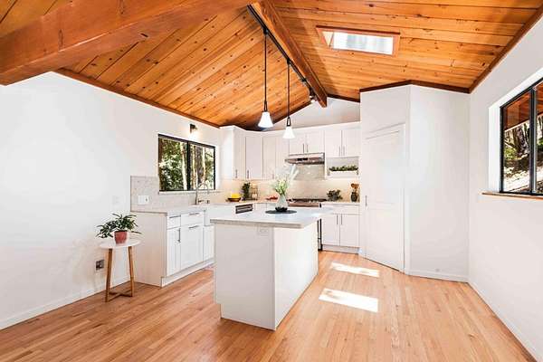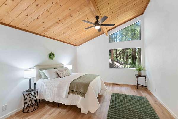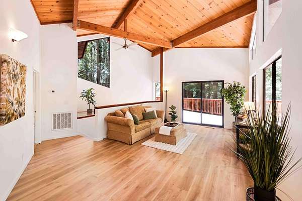 Step inside to soaring ceilings and forest views. Completely transformed, top to bottom. The sun-drenched kitchen is brand new, top to bottom: custom cabinets and counters, gleaming new sink, state-of-the-art appliances (dishwasher, stove & oven, hood and fan), sleek under-cabinet lighting, center island, and generous pantry. All new flooring throughout. Every bathroom has been completely rebuilt with new toilets, fixtures, showers, tubs, sinks, and tile floors. The primary suite is a peaceful haven with walk-in closet. Fully upgraded systems: Well pump and wiring, premium on-demand hot water, whole-house water filtration, heater and ducting, modernized electrical with panel and breakers, propane system, drainage, and lighting throughout. The wrap-around redwood deck and stairs are brand new, perfect for lazy afternoons under the stars. Updated entry doors and protected gutters, plus a retaining wall that expands parking. But here's the showstopper: A newly established trail winds from your door straight to the top of the property, delivering breathtaking panoramic views. Plus acres of existing trails ready for your personal hiking network adjacent to thousands of acres of public lands. Potential ADU and camping spots too. Mountain living doesn't get better than this.