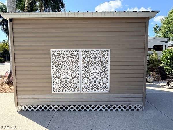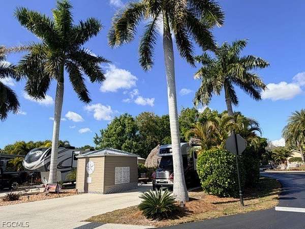Lot number one has an all concrete pad facing South. This lot offers loads of privacy and is surrounded by a vast variety of Landscaping to include an ACAI Palm, miniature date palms ACECA Palm, Sylvester Palms, one Cuban Royal Palms, one dwarf umbrella tree, several Caribbean, Royal Palms, a sago palm and numerous other varieties. The Amazon shed was placed on the lot in 2015 and measures 10 x 12. It's presently used for storage only and it has several large windows with an 80 amp electrical box with breakers for future use. You can remodel the shed and add a shower, toilet, sink and if interested a washer and dryer hook up. Also featured on the lot is a 10' x 20' Tiki Hut that was added for some nice shade during the day. The side yard features some small tan stones as well as some grass that will be maintained by the HOA. Make this lot your number one and your Florida home.