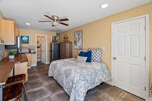 The chef-inspired kitchen is a highlight, featuring a central island, stainless steel appliances, and custom cabinetry. The adjoining dining area is perfect for hosting gatherings, offering easy access to the outdoor living spaces.