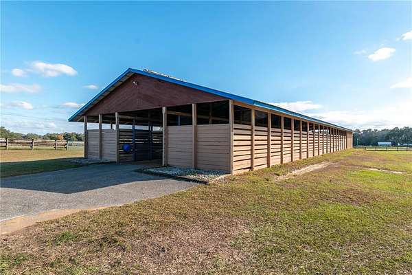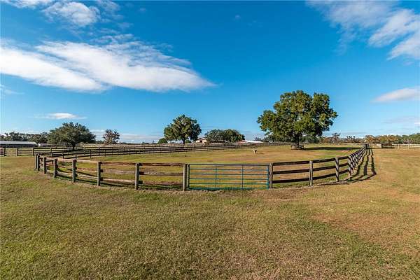 Train, compete, and thrive on this 50+/- acre horse farm that provides a fantastic base of operations and plenty of flexibility for further customization. Nestled just a short drive from both HITS and the World Equestrian Center (WEC) and just minutes from Ocala and I-75, this property is perfectly positioned to take advantage of everything Ocala has to offer. Rolling green pastures and paddocks stretch out in every direction, each thoughtfully designed to include their own mature oak trees for much needed shade. Two center-aisle wooden barns with metal roofs offer a combined total of 32 stalls, providing ample space for a serious training or boarding operation. A stunning ½-mile turf track is ideal for conditioning year-round, making this property a dream for any horseperson focused on performance. Two wells and two septics ensure full operational independence on the property. A 3-bedroom, 2-bathroom mobile home provides comfortable on-site living accommodations. There are multiple areas of the farm that could be used as a homesite for a custom residence if desired, and an abundant array of options for those looking to further customize the farm for training and ease of use. If you’re ready to bring your equestrian dream to the next level, this property is a must-see with a fantastic location near a variety of local tack and feed stores, equestrian service providers, and world-class veterinary care. Don’t miss out– this is your opportunity to own a performance-ready farm in one of Florida's most sought-after equestrian corridors! For those looking for higher acreage and additional residential options, barns, and more, OM722403 offers an additional 50+/- acres purchase directly next door.