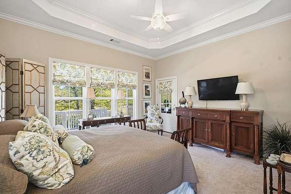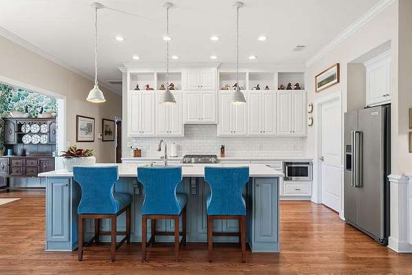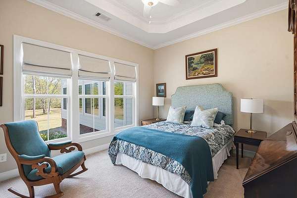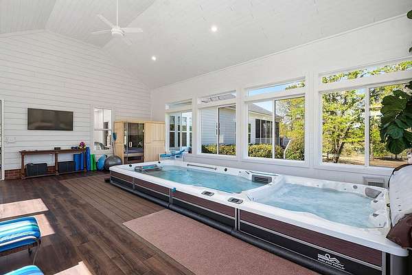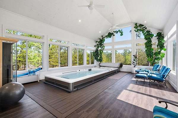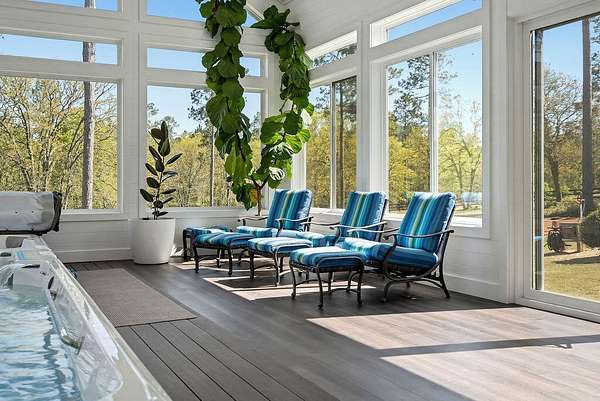5100 Wateree Place presents a beautifully crafted home set on 5.1 acres, ideally located near the clubhouse amenities within Three Runs Plantation--Aiken's premier equestrian community. This striking three-bedroom, three-and-a-half-bath residence was completed in 2020 and thoughtfully enhanced in 2022 with an exceptional spa addition featuring an indoor Endless Pool, Sunlighten sauna, and expansive pool deck. A welcoming front porch leads into an inviting interior with generous open living spaces, three private bedroom suites, and carefully curated custom details throughout. The foyer is warmed by a rich grasscloth wallcovering, while the light-filled dining room is elevated by elegant designer wallpaper and refined lighting. The living room showcases coffered ceilings, a central fireplace with brick surround, and custom built-in cabinetry accented with subtle textured finishes. The kitchen is both beautiful and highly functional, offering a large central island, quartz countertops, subway tile backsplash, walk-in pantry, and premium KitchenAid appliances, including a gas range and drawer microwave. The adjacent dining room, framed by a wide cased opening, features detailed trim work, wainscoting, a statement chandelier, and scenic views of open fields and woodlands beyond. Indoor-outdoor living is effortless with a spacious screened porch and adjoining deck--perfect for dining, relaxing, or entertaining. Tucked privately on the main level, the primary suite serves as a true retreat, complete with a spacious bedroom, custom window treatments, a large walk-in closet with built-ins, and a luxurious bath featuring dual vanities, soaking tub, private water closet, and a beautifully tiled walk-in shower. A nearby office/study offers custom cabinetry, dedicated workspace, and secure lockable storage--ideal for both productivity and peace of mind. Guest accommodations are equally inviting, with a main-level suite with private bath and an upper-level suite that includes a sitting area, built-in cabinetry with mini-fridge, and private bath. The upper level also provides abundant walk-in attic storage, including a dedicated suitcase area. Everyday functionality is enhanced by a seamless transition from the two-bay garage into a well-appointed laundry/mudroom with built-ins and a half bath. Beyond this, a versatile 32' x 36' climate-controlled studio offers endless possibilities--whether as a hobby space, fitness area, game room, or potential guest quarters. The spa room addition is a standout feature, with vaulted ceilings and walls of windows framing lush fig trees. Enjoy training in the indoor Endless Pool with a 15 ft. current pool, unwinding in the 5-seat spa or the Sunlighten sauna, and practicing yoga on the expansive deck--all in the comfort of your own home! Additional features include AT&T internet and a termite bond with Sentricon system. The 5+ acre property offers ample space for equestrian pursuits, with the potential to add fencing and a barn. Residents enjoy access to over 30 miles of riding trails, as well as all-weather dressage and jump arenas and cross-country schooling area. At 5100 Wateree Place, every detail reflects quality and intention, creating a truly distinctive property for inspired living! Come see this beautiful home and discover why so many are drawn to Three Runs Plantation known for its natural beauty, fine farms, estate homes, exceptional amenities and peaceful lifestyle.