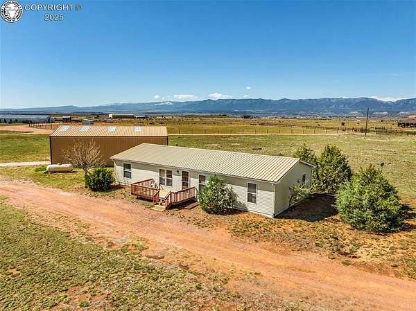 The seller agrees to a $10,000 flooring concession! Discover the perfect blend of rural charm and modern amenities on this 9.7-acre parcel near Penrose, Colorado. Zoned AR (Agricultural Residential), this property offers endless possibilities, whether you're looking for a private retreat, a hobby farm, or a space to build your dream home. Enjoy breathtaking mountain and plains views from your own slice of Colorado paradise. The property features a house with a new metal roof and newly installed vinyl siding. Included with the property is a freezer, and a 2,750 gallon underground water cistern, offering convenience and readiness for rural living. A highlight of the property is the impressive 30ft x 60ft shop/garage building. Built with functionality in mind, it boasts 13ft 6in sidewalls and a convenient 10ft wide x 13ft high sliding door, making it ideal for large vehicles, equipment, or workshop needs. This building features a new metal roof and skylights. There is an insulated room with a mezzanine above, perfect for extra storage or a workspace. Located in the quaint, unincorporated community of Penrose, this property is just a short drive from Canon City and Pueblo, providing easy access to amenities while preserving the peace and quiet of rural living. Do not miss your chance to own this unique property. Contact us today for more information or to schedule a private showing!