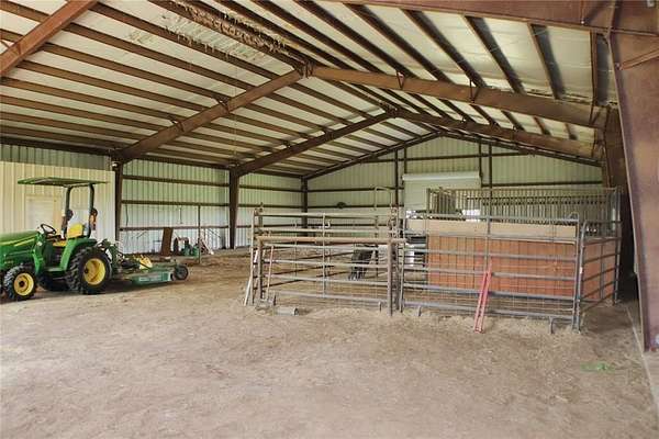 Welcome to your new paradise! This property is perfectly set up for your animals, featuring a 120' x 70' Covered Arena, 100' x 60' barn with 12 x 40 office concrete pad, 12 x 10 wash bay with hot and cold water, 12 x 12 stall, interior panel pen, permanent hitching post and cross tie posts. There are two fenced paddocks, a large loafing shed with shelter on two sides, and a pond stocked with Channel Catfish. The middle pasture is mowed for riding and dressage, while the back pasture is spacious enough for a regulation-sized driving arena. This Oak Creek Modular home includes 3 bedrooms, 2 baths, a dining, living room, and additional family room. Enjoy the covered and screened back porch, covered connecting the porch to the two-car garage, and an extra carport for parking. Additional features include a greenhouse area, a chicken coop, a tool shed, and a covered front porch spanning the length of the house. The home is surrounded by cyclone fencing and adorned with a variety of plants, perfect for the gardening enthusiasts--featuring Carefree Beauty, Knock Out, Cascade, and Mermaid Roses, Crape Myrtles, Pear, Peach, Elm and Red Oak Trees, Trumpet Vines, Purple Irises, Garlic, and Asparagus, and so much more. This is a must-see property to truly appreciate all it has to offer!