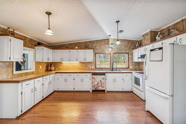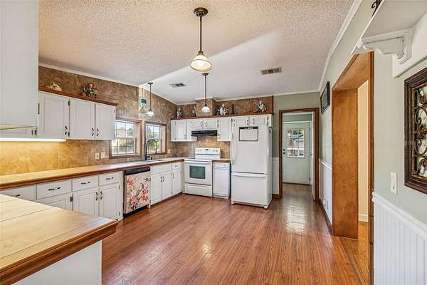 This 3-bedroom, 2-bath double-wide manufactured home offers over 2,000 square feet of living space with a desirable split-bedroom floor plan and open-concept living areas. The home features new interior paint, final upgraded flooring throughout, including laminate and luxury vinyl plank, and updated windows that allow for abundant natural light while enhancing energy efficiency and comfort.