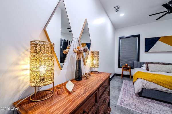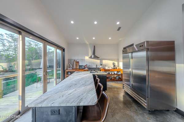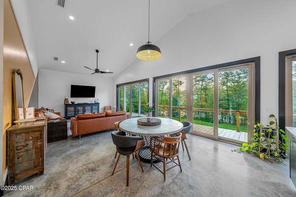 Stunning Waterfront Home on Marianna's Millpond producing $65,000 in annual gross income and 70% occupancy!!! Welcome to The Millstone, a one-of-a-kind custom home perched on a bluff overlooking Marianna's iconic Millpond. Built in 2021, this 1,850 sq ft residence offers 3 bedrooms, 3.5 bathrooms, and unmatched craftsmanship throughout. Step inside to find soaring 10 ft ceilings, stained concrete floors, and a 36 ft wall of glass that fills the home with natural light and captures breathtaking water views. The living space extends seamlessly onto a 45 ft covered porch-perfect for entertaining or relaxing while overlooking the Millpond. The gourmet kitchen is designed for both style and function, featuring a 9 ft leathered granite island, commercial-grade refrigerator, custom exposed cabinetry, and gas appliances. The home also includes foam insulation, a temperature-stabilized attic, and a Rinnai tankless hot water system for year-round comfort and efficiency. Situated on just under 2 acres, the property is set only 125 ft from the Millpond-the closest allowed. A wooden sidewalk leads from the house to the water's edge, where a 500+ sq ft dock with marine-grade pilings awaits for fishing, boating, or enjoying the serene views. Additional features include Hardie board siding, a settling tank on the well, and thoughtful design elements throughout. This property has also been utilized as a short-term rental with an impressive 70% occupancy rate. Financials will be provided to pre-approved buyers under contract. Homes like this are rarely available-don't miss your opportunity to own one of the Millpond's most striking residences.
