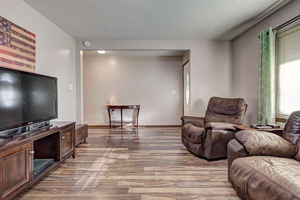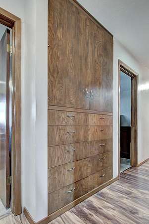 - Ceiling Fans, Ceramic Tile Flooring, Drapes/Curtains/Partial, Fireplace Equipment, Fireplace Screen, Laminate Flooring, Pantry, Shades/Blinds, Some Carpeting