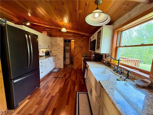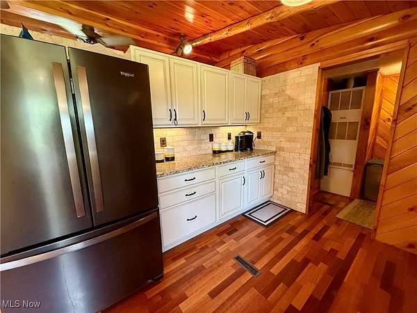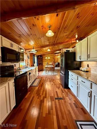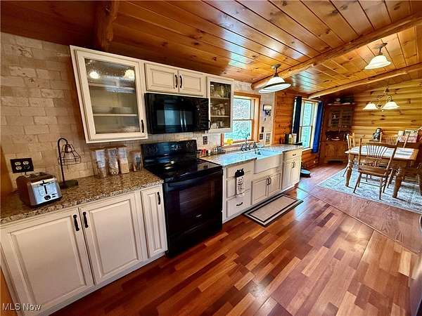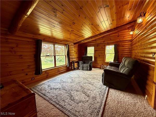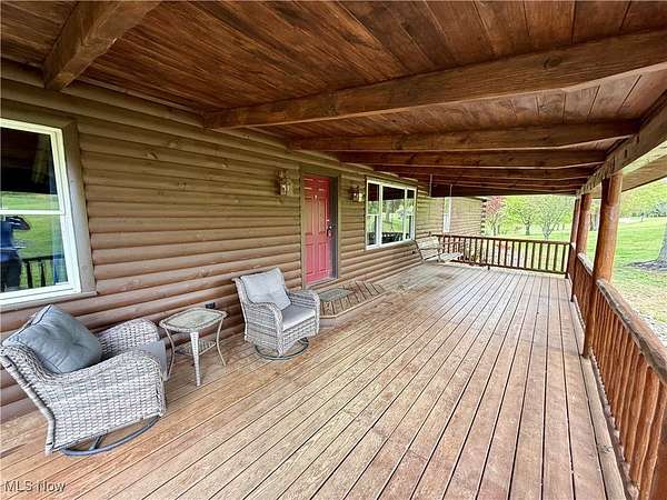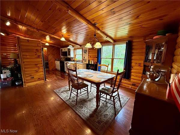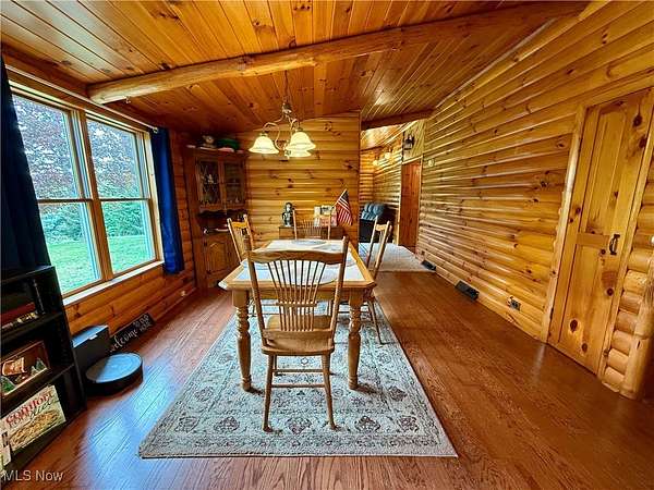 Charming One-of-a-Kind Log Cabin on 8.5 Scenic Acres! Nestled in a peaceful country setting, this unique custom log cabin offers the perfect blend of rustic charm and modern comfort. Enjoy stunning views and serene surroundings from the large covered front porch or spacious rear deck-ideal for morning coffee or evening relaxation. Inside, you'll find beautiful log siding throughout both the exterior and interior of this ranch-style home. The newly updated kitchen features high-end cabinetry, granite countertops, a marble backsplash, and new appliances-perfect for any home chef. With 2 cozy living areas, a dining space, 3 bedrooms, and 2 full bathrooms, the home's layout is both practical and inviting. The full bath serving the main living space and bedrooms has been recently remodeled. The owner's suite includes a private bath complete with a classic clawfoot tub and separate shower, plus generous closet space. Step outside to explore the private, expansive maintained grounds. The 24x40 garage can accommodate up to 4 vehicles, has concrete floors and electric and the property includes a variety of ornamental trees, with 4+ wooded acres teeming with wildlife-ideal for nature lovers and hunters alike. A custom-built stone fire pit adds the perfect touch for outdoor gatherings or quiet evenings under the stars. Wildlife enthusiasts will appreciate the frequent sightings of trophy-size whitetail deer, caught on trail cameras. Additional highlights include: Brand new septic system (2024),Expansive acreage with both open lawn and wooded trails. A rare and truly unique property that offers privacy, charm, and modern convenience.This stunning property won't last long-call today to schedule your private tour!