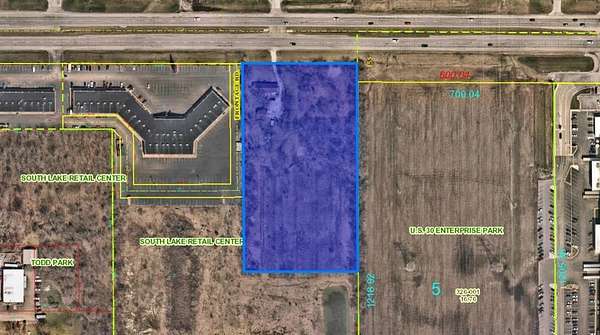 Est $6,520/moOver 5 ACRES with 352 feet frontage on US 30 and a 636 foot depth. Planned for B3 zoning. All utilities on site and ready for development. East and West bound US 30 Access with turning access from West bound lanes can be available. B3 allows for most all office and retail type uses such as auto dealers, office, retail, recreation. This property is situated on the South side of US 30 between an existing Strip mall and Albanese Candy. Lots of opportunity for investors or your business. Ample frontage allows flexibility to utilize all 5 acres.