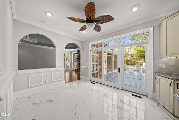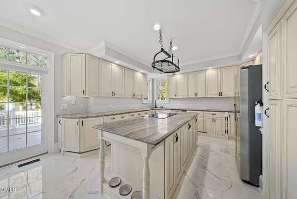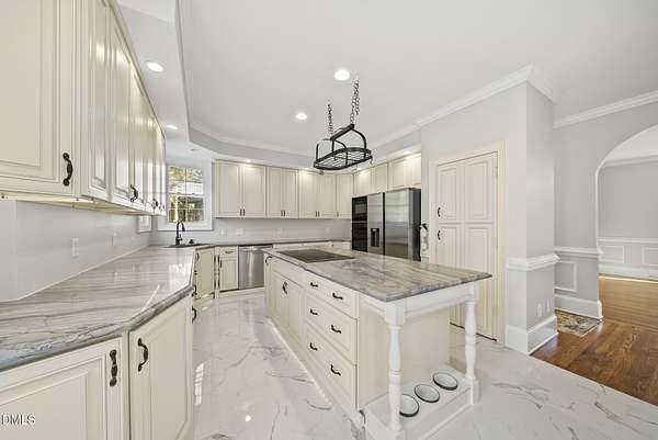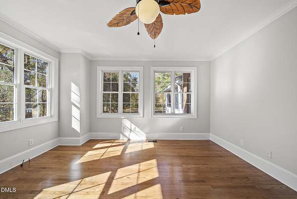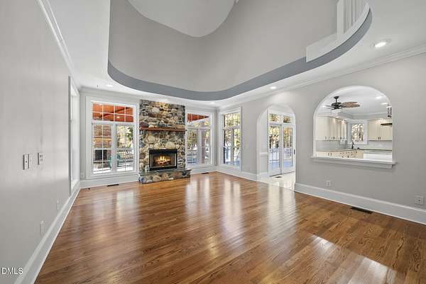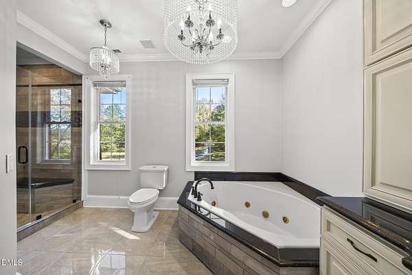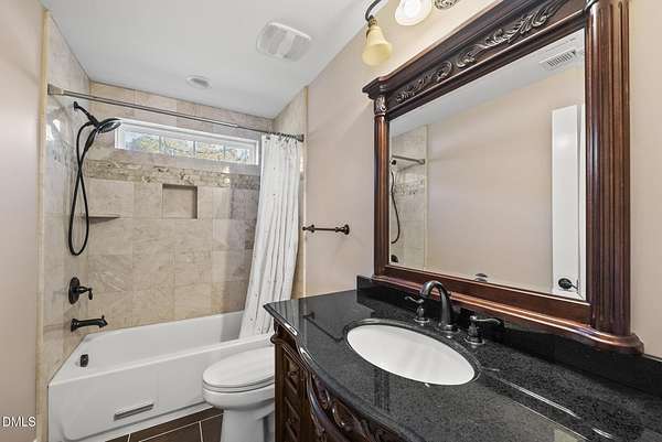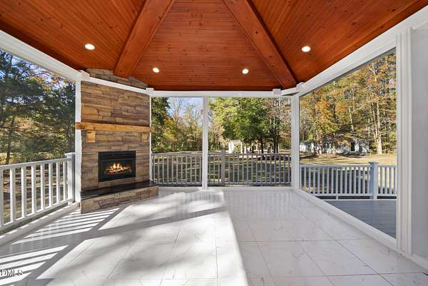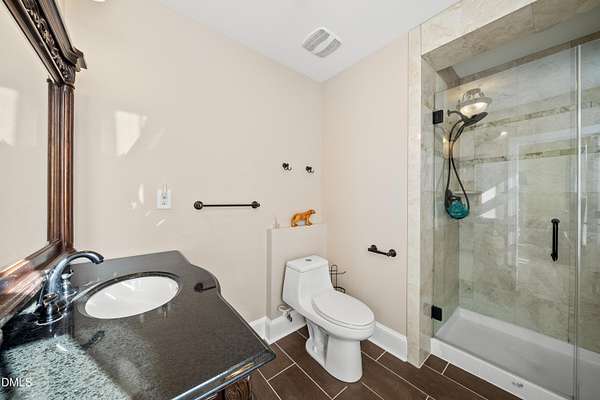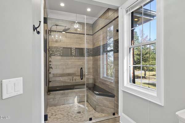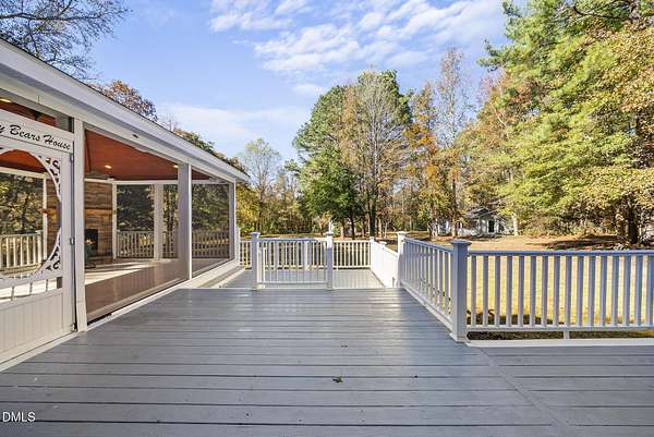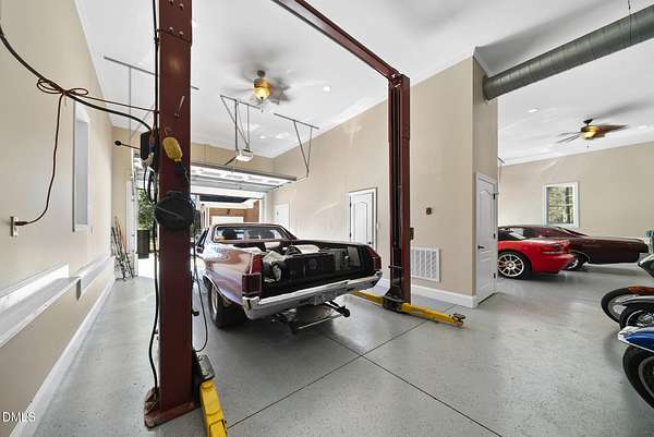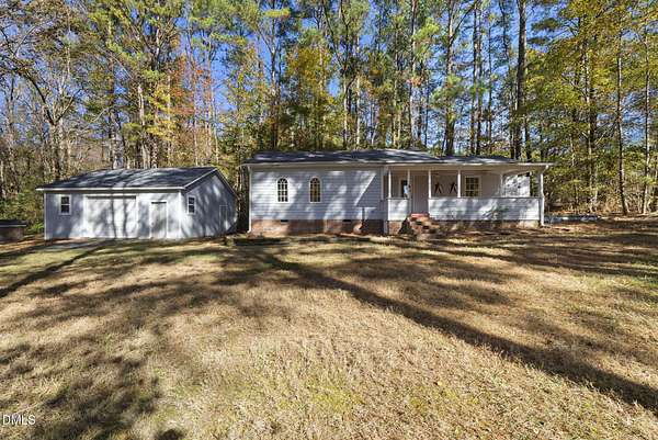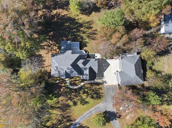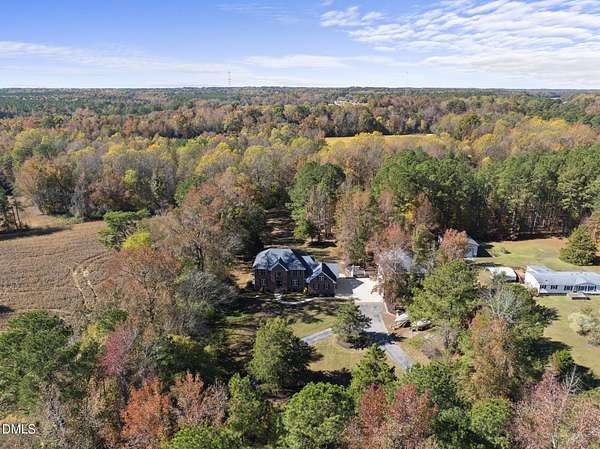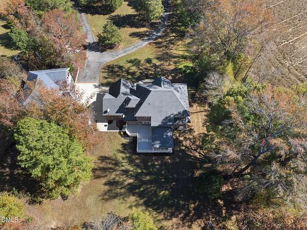 Tucked away on over 3 private acres, this stunning custom home blends timeless design with thoughtful modern updates. The main residence offers approximately 3,200 square feet with 4 bedrooms and 3.5 baths, highlighted by rich hardwood floors, fresh neutral paint, and abundant natural light throughout. The open living area features a soaring ceiling, a striking stone fireplace, and walls of windows overlooking the wooded backyard. The spacious kitchen offers light cabinetry, granite counters, stunning marble floors and creates a perfect flow for entertaining. The main-level primary suite includes a spa-like bath with dual vanities, a soaking tub, and a beautifully tiled walk-in shower. Upstairs, you'll find generous secondary bedrooms, a Jack-and-Jill bath, and abundant walk-in storage. Enjoy North Carolina's seasons year-round on the screened porch with its own fireplace, perfect for relaxing or hosting friends. Car enthusiasts and hobbyists will love the attached 3-car garage plus an additional 3-car, heated/cool detached garage complete with a professional car lift, commercial air compressor, and a full 2-bedroom, 2-bath, 1326 sq ft ADU above - an ideal guest retreat, in-law suite, or income opportunity. An additional finished outbuilding provides even more flexibility for a workshop, studio, or home gym. Peaceful, private, and minutes from everyday conveniences - this is a rare combination of space, craftsmanship, and versatility. Note: Entire property deeded all under one address however the ADU has a seperate mailing address and utility . Main house screened porch not permitted.