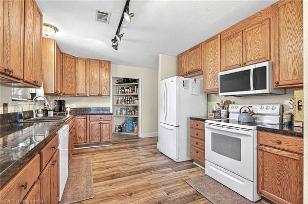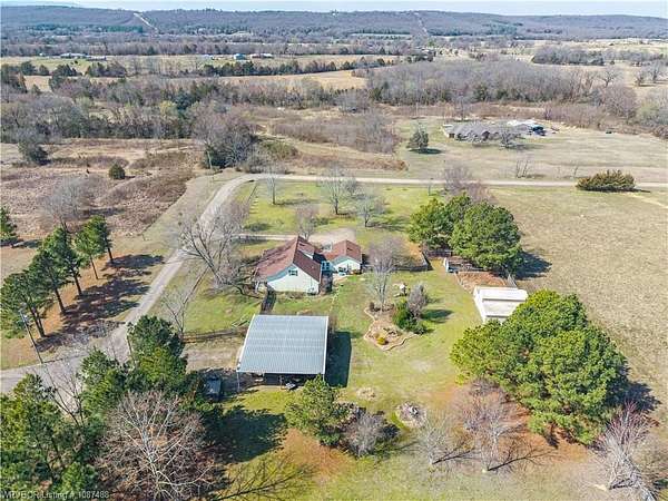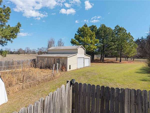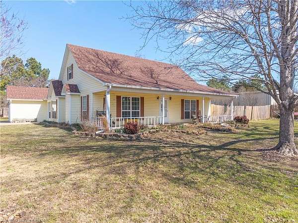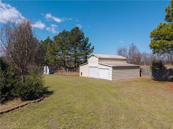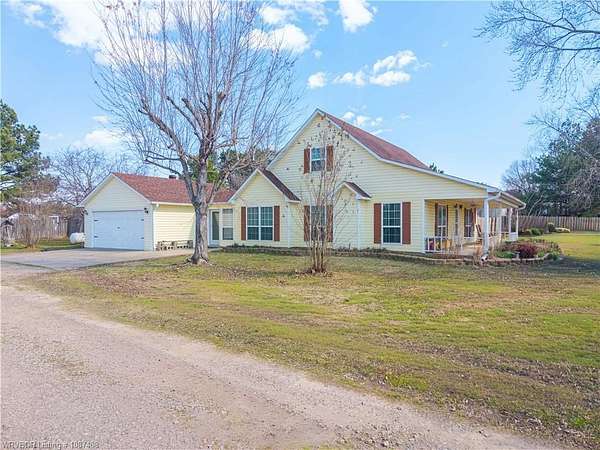 Modern Farmhouse with Covered Porch & Side Entry Two Car Garage. Sitting 2.17 +/- Acres with One Shop (1216 SF), One Storage Building (757 SF) Both with Electric & a Greenhouse. Located in Greenwood School District, 6 Miles from Greenwood's Walmart & 13 Miles to Fort Smith. Property has Perimeter Fencing, an Interior Wood Privacy Backyard Fence & Electric Driveway Gate. The House has 3 Bedrooms & 2.5 Baths with a Large Covered Front Porch. Great Floor Plan with the Primary Bedroom on Main Level. Two Bedrooms, Homework Area & Full Bath Upstairs. Soaring Ceilings in Living Room & Primary Bedroom. Kitchen Has Granite Counters & New Appliances. House has Been Updated in the Last Few Years To Include: Tankless Hot Water, New Heat & Air, New Appliances, New Wide Plank Flooring, Updated Plumbing, Exterior Painting, Roof & More. This is a Must See, Especially with the Two Large Exterior Buildings & All the Amenities.