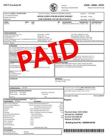 Est $2,188/moPERMITS HAVE BEEN PAID! START YOUR CONSTRUCTION TOMORROW AND TAKE ADVANTAGE OF APPROVED PLANS BASED ON THE 2020 CODES AND NO REQUIREMENT TO COMPLY WITH THE 2025 CALIFORNIA WILDLAND-URBAN INTERFACE CODE. Approved plans for a luxurious, modern 3 bedroom, 2 bathroom, 1800+ sqft home with an attached two-car garage complete with a balcony providing magnificent views. This vacant lot sits on a quiet street just south of Ventura Boulevard, surrounded by beautiful homes and scenic canyon views. Location, location, location. Take advantage of this stunning opportunity!