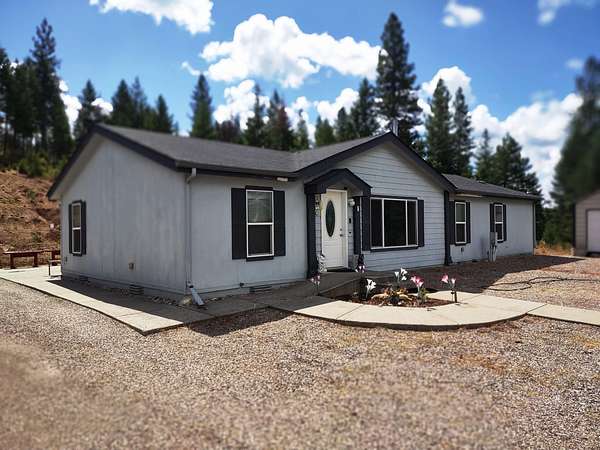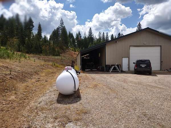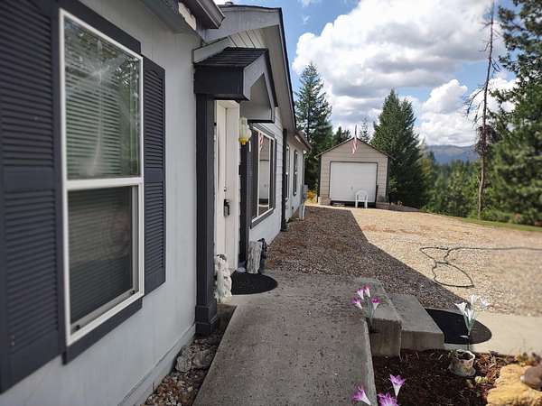 Amazing 180 degree views from this hilltop retreat! Privacy is premium here but only 1 mile off paved Hwy. Pit-set Karsten MH in good condition. Spacious kitchen with eat bar, island and lots of storage space. Concrete handicap ramp at front entrance. Family room has slider to patio. Primary bedroom has separate shower with corner tub. Insulated 40x60 shop has everything you need and want (14ft roll-up doors on both ends, enclosed 12' lean-to down the long side, laundry room and separate full bathroom, propane and wood heat). Timbered 40 acres with variety of wildlife is surrounded on 3 sides by State land and on the west side by timber company land. If you hunt or just want to be left alone, this is a perfect fit! RV hookup by shop.