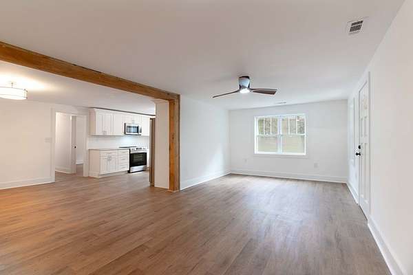 Fully renovated home on unrestricted land, situated to capture the sounds of both a primary creek and a secondary stream. This property offers a rare combination of modern interior finishes and functional, level acreage--perfect for a garden, greenhouse, or small homestead. The heart of the home is a bright, open floor plan featuring a kitchen with white shaker cabinetry, leathered granite countertops, a tile backsplash, and stainless steel appliances. The clean, functional layout is accented by new flooring and a neutral palette that maximizes natural light. The split floor plan includes two bedrooms, two bathrooms, and a versatile bonus room. Both bathrooms are upgraded with custom tile showers and flooring, a high-end detail not often found in the local market. This "like-new" residence offers peace of mind with a newly installed private well and updated systems. Outside, the flat land by the water provides a peaceful setting with views of the Snowbird Mountain Range, offering a turnkey retreat with total land-use freedom
