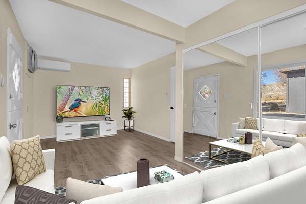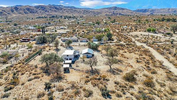 Vista Solace, a serene 2.5-acre horse property and retreat in Morongo Valley, a prime location just 20 minutes from both Palm Springs and Joshua Tree. Enjoy the beautiful high desert climate and breathtaking 360 degrees mountain views. This two-story home, originally built in 1957 and remodeled in 2024, combines vintage charm with modern updates. Inside, you'll find two fireplaces, a one of a kind kitchen countertop, and delightful details like a Dutch door and Ironing board closet. Every room boasts spectacular views, with 3 bedrooms, a study, loft, and sunroom offering versatile spaces. Outdoor features include an extended patio, balcony, recreation area, and spaces perfect for a fire pit, outdoor dining, or a spa setup. Creativity meets natural beauty here, enhanced by two tack houses, a chicken coop, oversized garage / workshop and a roundabout driveway. Endless possibilities await in this tranquil desert escape.