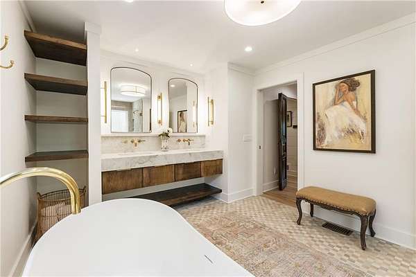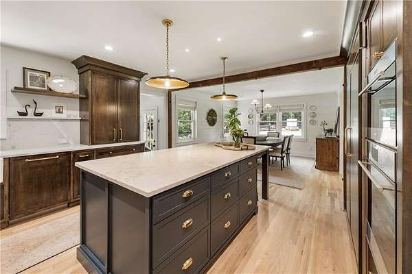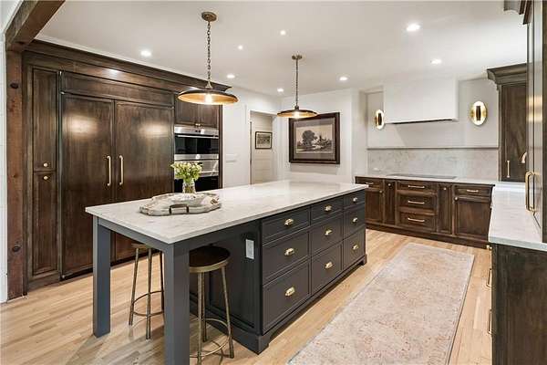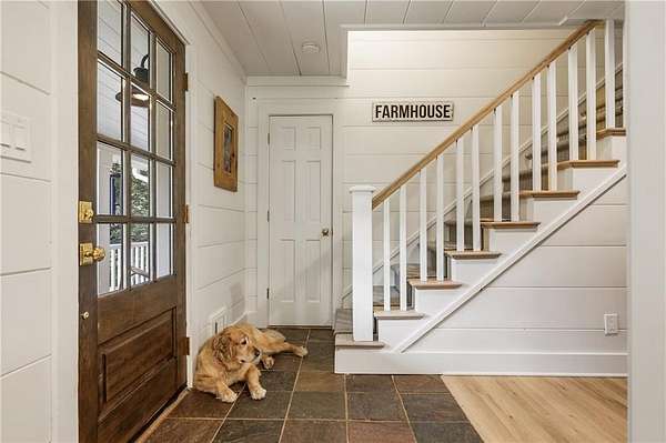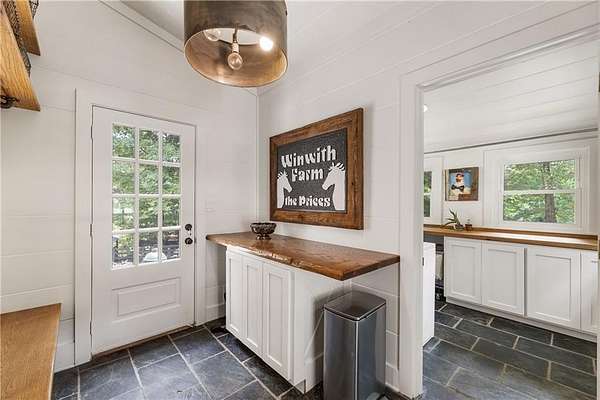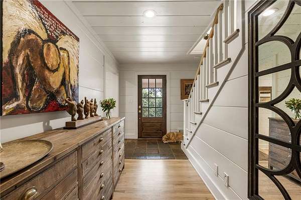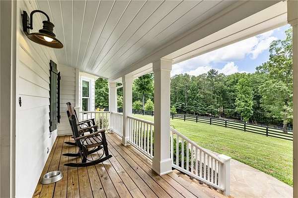 Experience this exquisitely renovated farmhouse, perfectly situated on a gentle hill with spectacular views of the surrounding acreage and pond, offering a prestigious Alpharetta address in the heart of Southeast Cherokee County. Now offered as a premier 5-acre sanctuary with an additional 2-acre pond parcel available for those seeking the full 7-acre retreat, this property is ideally located within 15 minutes of Crabapple, Downtown Alpharetta, and Roswell. This turnkey hobby farm is move-in ready for horses or goats with four-board fencing, a solar-powered gate, an updated utility barn, and a double run-in shed. The residence underwent a massive 2024 down-to-the-studs main-level renovation, featuring all-new systems, triple-pane windows, and a chef's kitchen anchored by Sub-Zero and Wolf appliances, custom maple cabinetry, and quartzite countertops. The primary suite serves as a true sanctuary with a zero-entry double shower, soaking tub, and unlacquered brass finishes, while the finished terrace level offers a guest suite and versatile flex spaces for a home office or media room. Outside, hand-laid stonework leads to an English garden patio and firepit, creating a magical setting for entertaining. This rare opportunity offers the perfect blend of high-end luxury and storybook country living, providing effortless access to fine dining and boutique shopping without compromise.