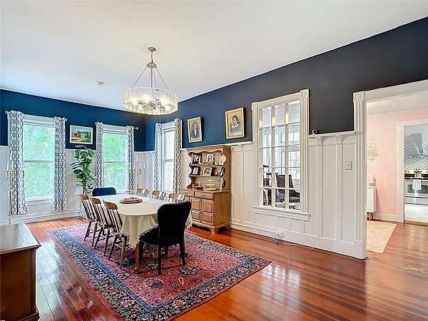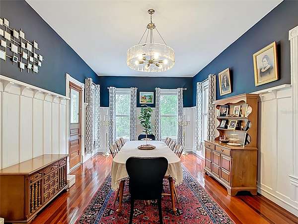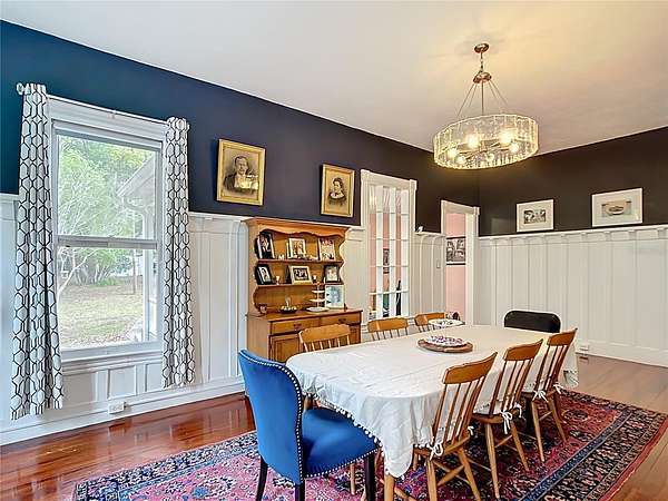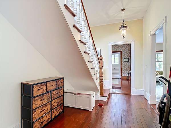 Bed and Breakfast on a lake just on the outskirts of The Villages. Home was built in 1889, it has the original beauty has been preserved, yet its updated to modern standards. Located on over 2 acres. There an older carriage home/stable/barn that can be redone into additional rooms. The home has the original hard pine floors, trim and wainscoting. Some of the windows have the original wavy hand blown glass. For people that love history, this home has it. It belonged to the founding family of Fruitland Park. At one time it was a much bigger estate. On the property is the metal structure from a previous water tower. That could possibly made into a great tree house. Lots of room for parking and outdoor events. Space for gardens. It is priced right. You get a one of a kind home for the price of a cookie cutter home in the Villages. This is deal. Sellers are motivated.