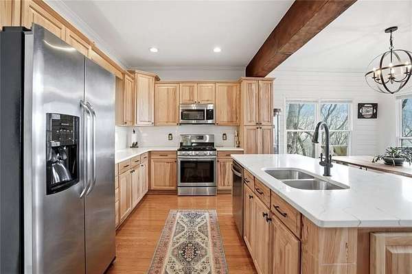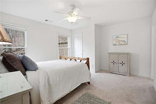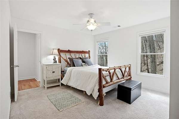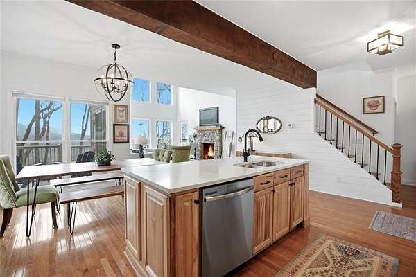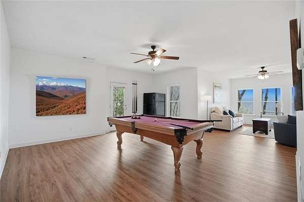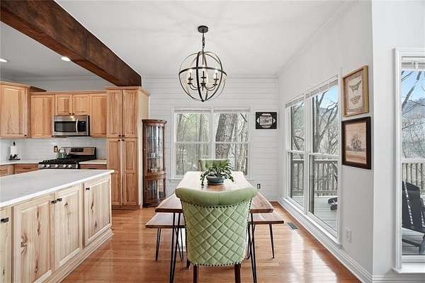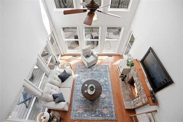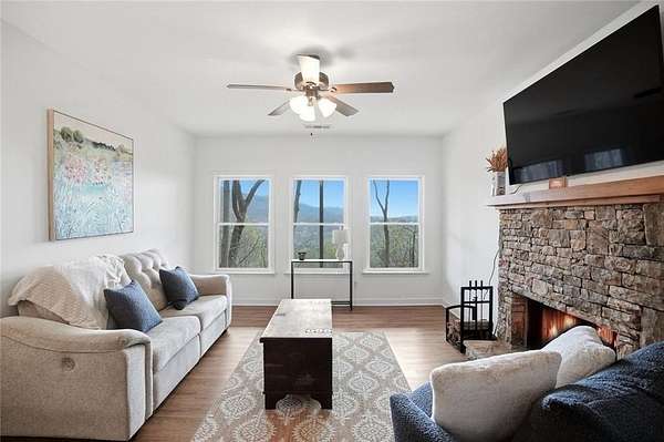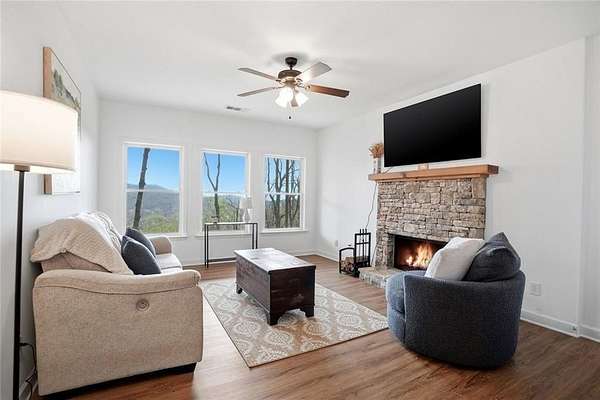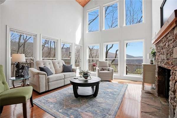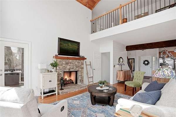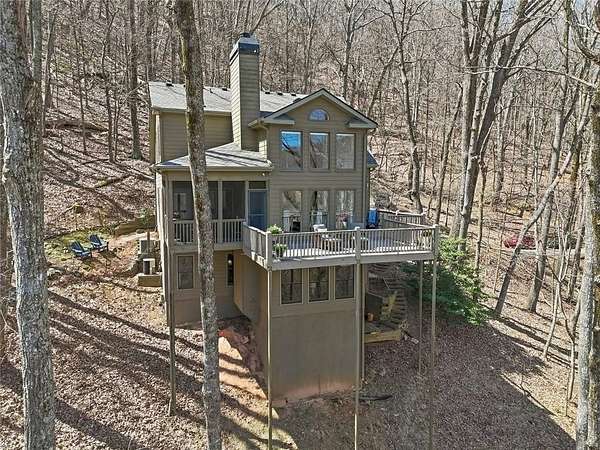 Welcome to 511 Hickory Trail, a 4-bedroom, 3.5-bath home on 1.85 private acres at the end of a quiet cul-de-sac in beautiful Big Canoe. This property offers eastern-facing, long-range views and is bordered by greenspace for total privacy. The main level features a large wall of windows in the living room, an updated kitchen with quartz countertops, and a master suite opening to a screened deck. Enjoy two fireplaces, one wood burning and one gas, a new roof, and a freshly repaved driveway. The fenced area off the front porch is perfect for pets. Upstairs, you'll find two spacious bedrooms, a full bath, laundry, and a loft with a view. Downstairs includes a private entrance and could function as a separate apartment with the addition of a kitchenette. This home is the perfect full-time residence, part-time getaway or rental property. Minimal steps going to the front door of home. Driveway is a gentle slope with flat area at the top. Big Canoe spans 8,000 acres, with over one-third preserved as parks and green space, and is certified as a Nature Preserve by Georgia Audubon. Residents enjoy access to golf, tennis, pickleball, bocce, a 13,000-square-foot Wellness Center, dog parks, playgrounds, lakes, and 25 miles of scenic hiking trails, with flexible membership options or pay-as-you-go access.