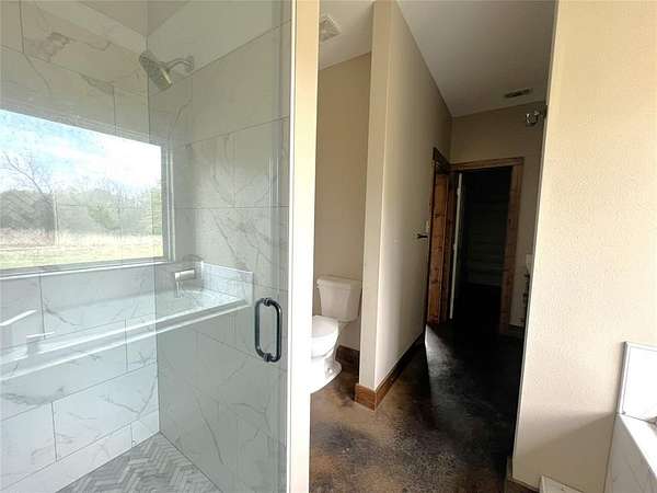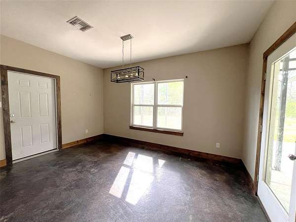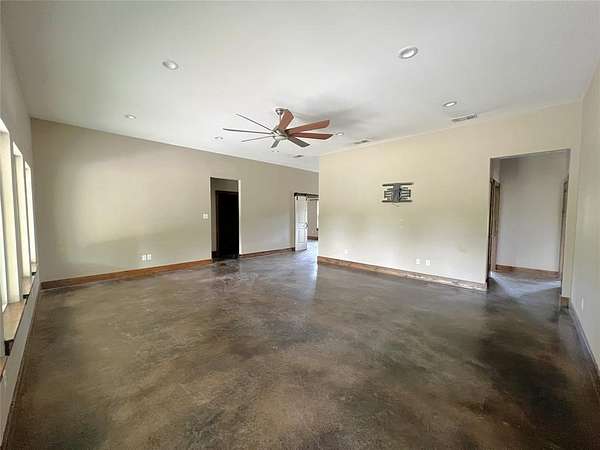 This 3 bedroom, 2.5 bath home sits on just under 7 acres and offers a private setting tucked behind the trees. Built in 2020, the home features stained concrete floors, high ceilings, and granite countertops. The primary suite includes dual walk-in closets, a separate shower, dual sinks, and a large tub. The back patio provides space for relaxing or entertaining. Conveniently located near I-30, the property offers quick access to downtown while still providing a quiet, country feel.