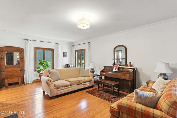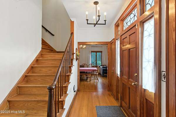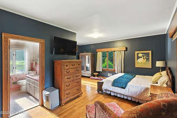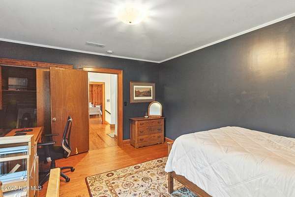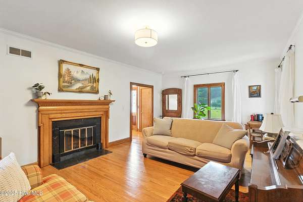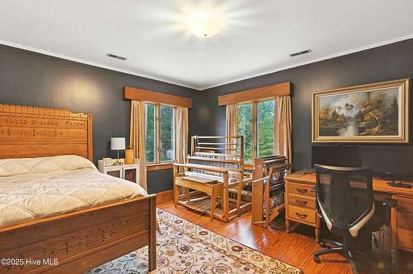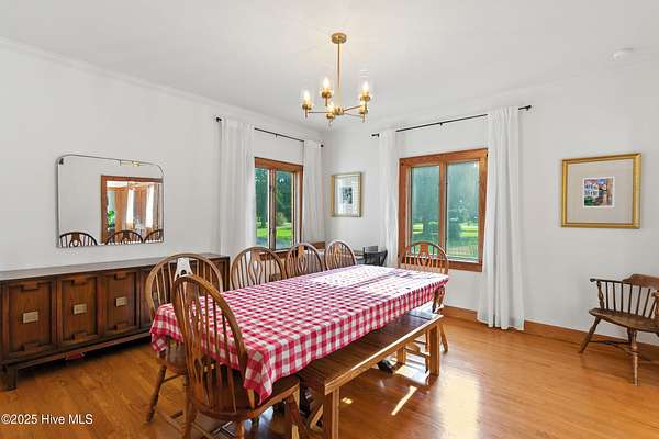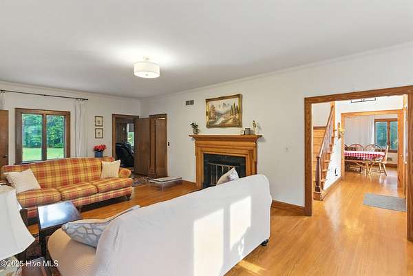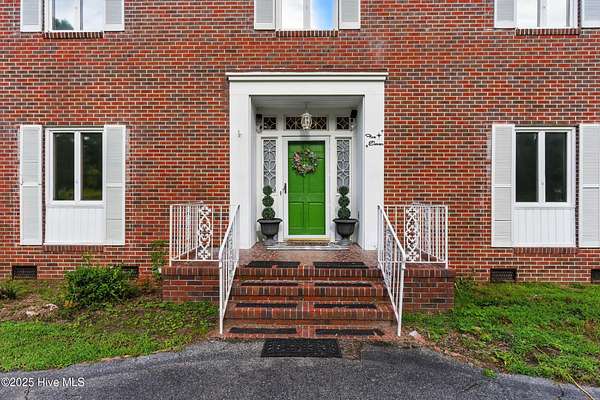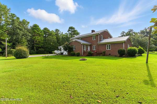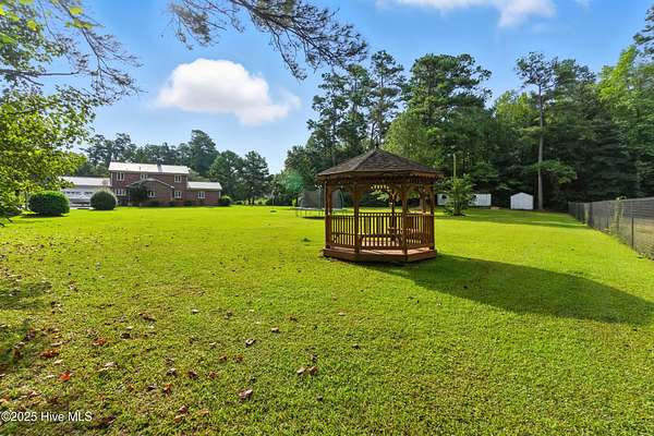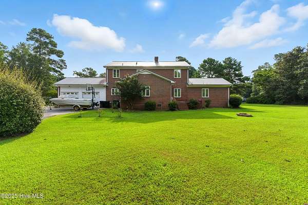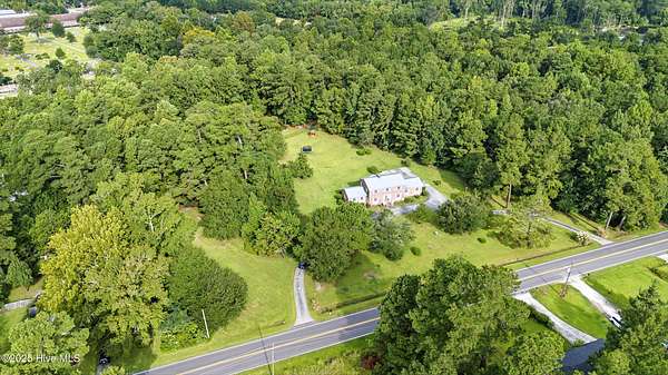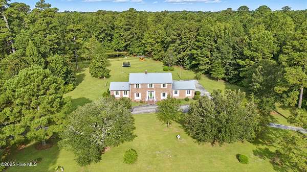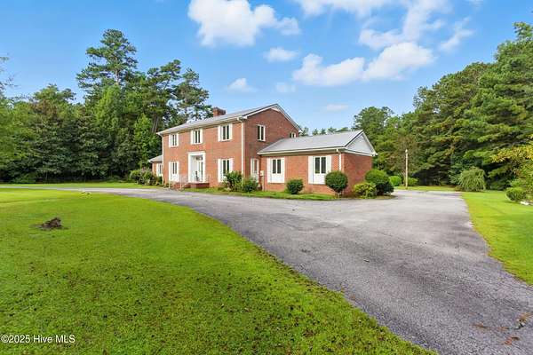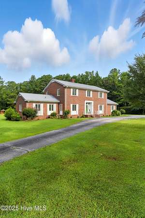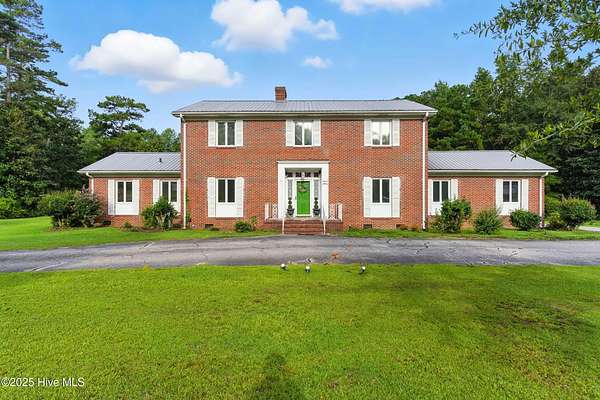 Imagine waking up to over 6 acres of beautifully landscaped grounds, complete with a peaceful pond and gazebo for a serene retreat. This executive-style residence offers over 3,000 square feet of living space with timeless charm and modern updates. The home features 4 bedrooms and 2.5 bathrooms, including a first-floor primary suite with a dressing area, custom built-ins, a walk-in tub, and a separate shower. Hardwood floors run throughout most rooms. The spacious living areas include a formal dining room, a living room with a fireplace, and a family room with custom cabinetry. The kitchen is warm and inviting with Ponderosa pine cabinets. Upstairs are two extra-large bedrooms with cedar-lined closets and an additional bedroom. The home is designed with low-maintenance brick and vinyl accents and includes a rear-entry double garage with extra parking. The property is connected to municipal sewer and water services and includes three storage buildings. This listing also includes the adjacent 1.85 acres lot, making this an even more exceptional opportunity to own a special piece of Burgaw! Listed individually as well for marketing purposes, there are no options to separate. Please DO NOT approach the pond fence or proceed past gazebo.