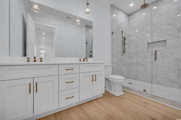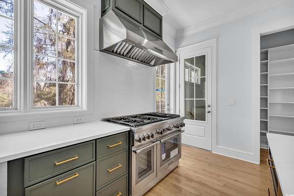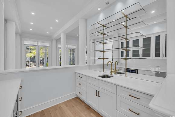 A one-of-a-kind property, completely Renovated to preserve the home's classic low country charm while adding sophisticated modern touches. Situated on over 5 acres of private riverfront, manicured grounds overlooking the Waccamaw River. Offering 4 bedrooms, 4.5 bathrooms & is a masterpiece of modern design and historical preservation, blending the best of both worlds. You will notice the pristine landscaping offering sweeping views of historic rice fields that stretch out like a tapestry below, with views of the water. The entryway with its grand staircase not only serves as a path to the upper level, but a striking focal point with plenty of natural light coming through the expansive windows. On either side of the foyer are two large rooms with marbled finishes, fireplaces-what could be a fabulous dining room, library, or another living room-endless options! The fireplaces have new, remote controlled logs. The original wood floors have been refinished and crown molding has been added throughout, enhancing the architectural beauty of each room. The large family room is the heart of the home and offers creative possibilities for design and layout. Together, the family room, wet bar, and half bath create a spacious and functional hub. The newly designed wet bar is conveniently located providing a great space for entertaining. Equipped with custom cabinetry, a quartz countertop, Hoshizaki ice-maker, wine cooler and glass shelving for glassware. French doors open to the expansive porches, making it the perfect space for enjoying a quiet evening or a lively gathering. The covered, wraparound porches on each level that invites relaxation, where you can enjoy the breeze and take in the panoramic scenery. The open floor plan flows nicely into the Gourmet Kitchen, which has been meticulously planned and equipped with stainless steel, state-of-the-art appliances including a professional-grade range & oven, custom cabinetry, vast island, quartz countertops and designer light fixtures. There are two Bosch dishwashers ensuring effortless clean up. For additional storage, the kitchen features both a pantry and a butler's pantry with plenty of shelving and cabinets. There is a functional desk area within the kitchen which blends practicality into the space. An Elevator serves each floor, ensuring ease of movement throughout the home. An additional bedroom, closet and full bathroom was added downstairs off of the main living area. A great guest, bonus or primary room if one chooses. Follow the staircase up to the expansive, primary suite with high ceilings and natural light. One of the standout features of this room is the private, balcony with stunning views. The finishes of the primary ensuite are sleek and refined offering a freestanding soaking tub, an oversized, tiled, Steam shower, double vanities, custom designed His/Her closets and a water closet. In addition, on the third level are two, oversized bedrooms each offering plantation shutters, private bath and custom closets. Three-car garage with ample amount of parking along with plenty of storage with 3 storage spaces and a workshop with granite countertops. Another amazing, feature is the climate, controlled Wine Cellar designed to store your wine collection in ideal conditions. There is a charming guest cottage nestled within the grounds, whether used as guest quarters or an office this cottage provides a tranquil space away from the main residence. The cottage offers beautiful wood floors, fireplace, full bathroom and walk-in closet. This home is a masterful blend of Southern charm and modern luxury, designed to complement the natural beauty of its surroundings. Homeowner's enjoy both River & Ocean side amenities. The River side offers the private marina & a deeded boat slip for the homeowner, clubhouse, fireplace, sitting area and kitchenette. Prince George is one of the most exclusive neighborhoods around & the only south strand community to stretch from the ocean to the river.