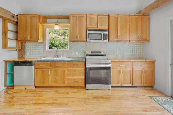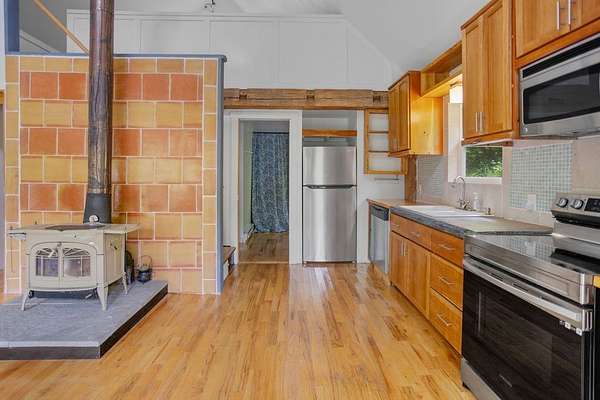 Get back to nature and unwind at this quaint cabin nestled in the scenic hills of Wellsboro. Situated on 10+ acres with a babbling stream and a sturdy steel bridge, this versatile property offers potential as a full-time residence, seasonal getaway, or investment opportunity. The open-concept interior features two inviting bedrooms, a full bath with laundry, and a functional kitchen--perfectly sized for comfortable living with a smaller footprint. Enjoy the warmth of the wood stove after a day outdoors, or use the electric heat for added comfort. Designed to embrace the natural surroundings, the front field offers space for future use--whether you're considering additional storage, a garden/orchard, or simply preserving the open landscape. Or, traverse the woods, sit quietly on the spacious porch watching the stars while listening to the nearby stream, or enjoy a cozy camp firewhile toasting marshmallows. This property is only limited by your imagination. Schedule your tour today.