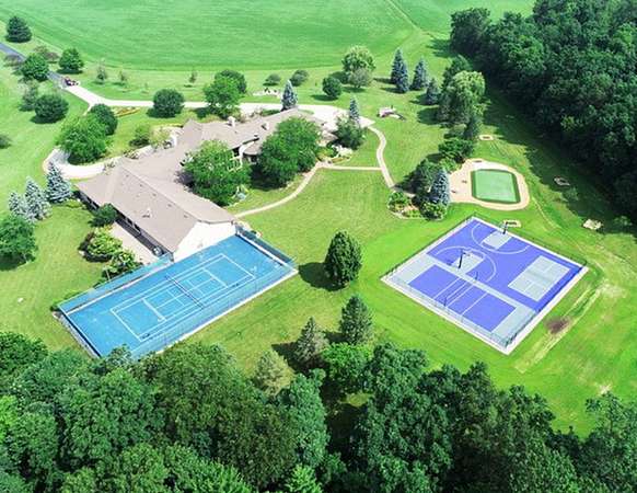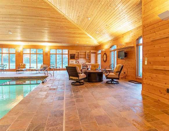 Resort-caliber amenities elevate the estate experience and include a three-story elevator, racquetball court, tennis court, fitness center, pickleball court, putting/chipping green, ATV/UTV trails, and an impressive indoor pool complete with waterslide and kitchenette. Outdoor recreation opportunities abound year-round. Surrounded by established timber and breathtaking vistas, the property delivers a level of seclusion rarely available in today's marketplace. Exterior spaces invite both relaxation and adventure, whether enjoying peaceful mornings overlooking the landscape, observing wildlife movement through the woods, or exploring the grounds each season. The thoughtful blend of open views and wooded cover creates an ideal balance of beauty, privacy, and functionality.