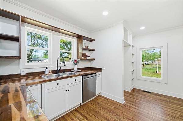Welcome home to this beautifully updated property that perfectly blends classic Southern charm with modern convenience. Nestled on two level lots in the heart of Iva, this timeless home offers rare, in-town space, no HOA, and limitless potential. It's farmhouse style offers an expansive wraparound porch, which sets the tone for relaxed country living, while a smaller, second covered side porch, is off the kitchen. Inside, the home offers abundant character and functionality, featuring: spacious bedrooms, including two bedrooms & full bath upstairs, with multiple built-ins for storage and window seats. Additional bedrooms and flex spaces are on the main level, The serene primary suite with private bath and oversized walk-in closet offers a flex space that could be used as a dressing room or perhaps a quiet 'getaway'. The large family room with soaring ceilings and dual ceiling fans is the center of the home. Hardwoods and original beadboard can be seen throughout.. A bright, open kitchen with a new stainless-steel gas stove, an eye-catching stove hood, butcher block countertops, white cabinetry, open shelving, and wooden beams will quickly grab your attention. The dining room flows off the kitchen, with built-in shelving, built-in counter space and a beautiful feature wall. The laundry room is also off the kitchen, with additional shelving, perfect for pantry use, and access to the back yard and pergola, that could also be used as a carport. Outside, the opportunities are nearly endless. The two lots equal over 1.5 acres, allowing plenty of space for play, entertaining, gardening and dual entrances for a driveway. Recent upgrades include new double-pane vinyl windows, a new HVAC system, and a new water heater for efficiency and peace of mind. The plumbing and wiring were updated by previous owners. Whether you dream of creating a multi-generational homestead, gardening, raising chickens, or simply need space for your RV or boat, this property provides the freedom to make it happen. Located in highly rated school district three and just minutes from Lake Hartwell, Lake Russell and Lake Secession, this property offers a rare combination of space, modern updates, and timeless charm. The layout also offers options for multiple generational living. The property is professional staged; staging items will not convey.