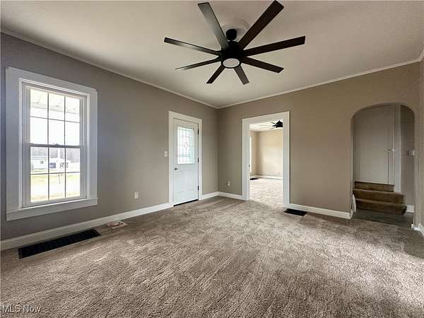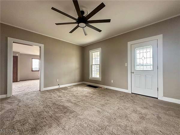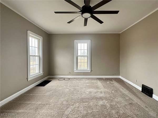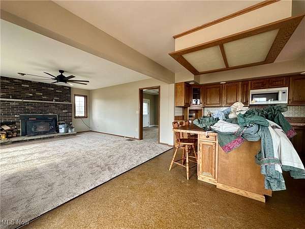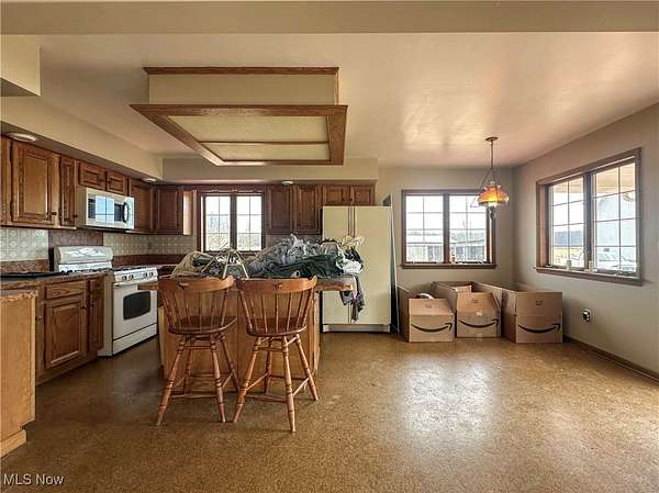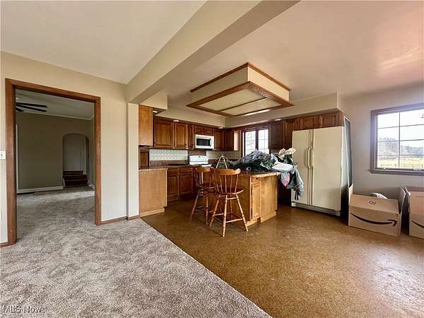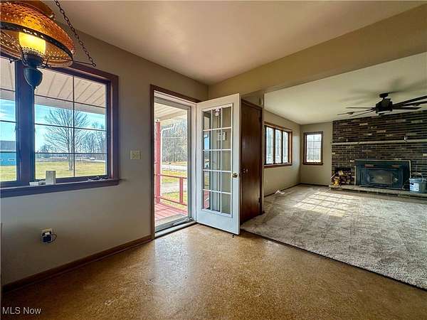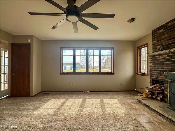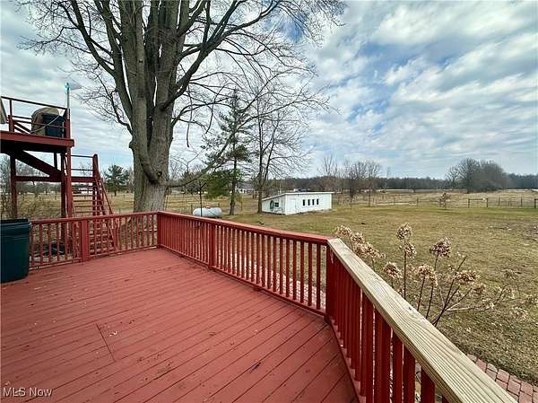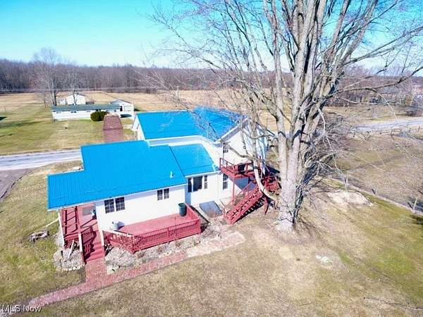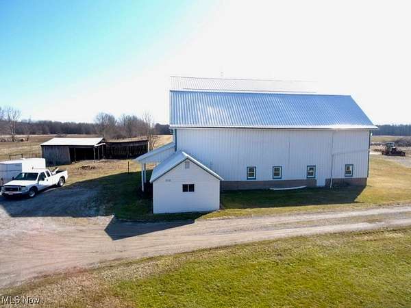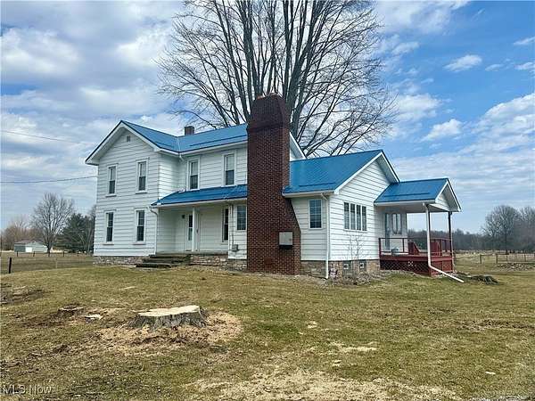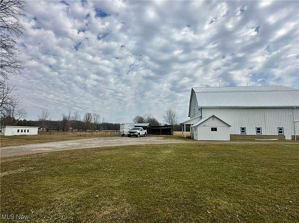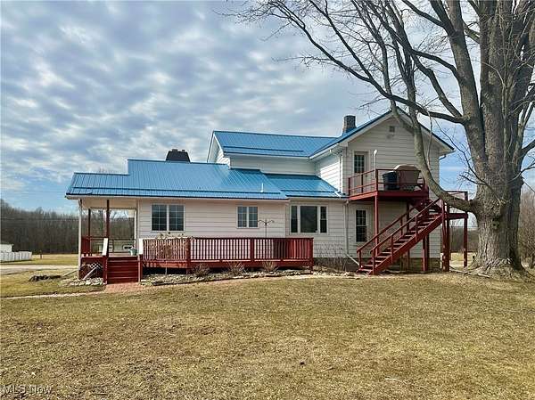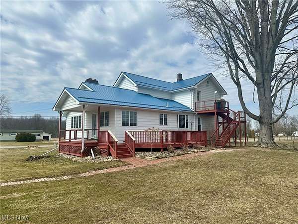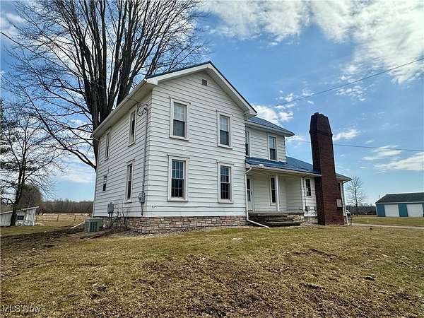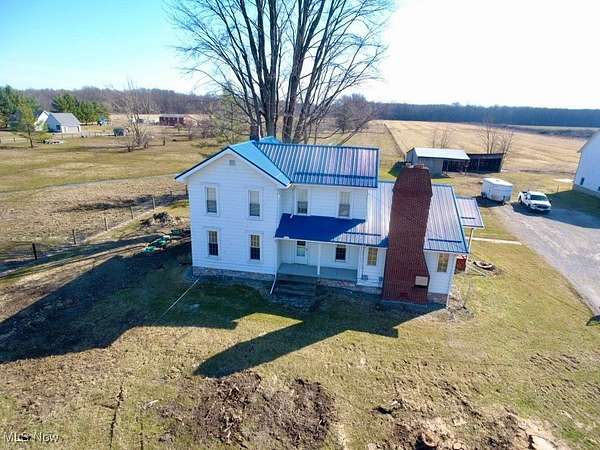 Live your country dream on 10 beautiful acres in Mecca township! This unique property features a substantial barn, an outbuilding, a fenced-in pasture, a chicken coop, and an up & down duplex with an newer metal roof and a brand-new septic system. The first-floor unit includes a spacious living room, family room with fireplace, eat-in kitchen, two bedrooms, full bath, and laundry area. There is new carpeting and new ceiling fans throughout. The second floor, which is currently tenant-occupied and can only be accessed from the exterior, provides a living room, eat-in kitchen, one bedroom, full bath, and laundry. A new owner could convert this home back to its original floor plan if desired. Other highlights include a full basement, covered front and side porches, a deck, and ample storage options. Best of all, this property is located just a short distance from the Trumbull County Fairgrounds, Mosquito Lake, camping, boating, fishing and recreation. It's the perfect backdrop for a peaceful and private rural lifestyle. (The current parcel is 32.62 acres, but the owner is replotting to a 10-acre parcel with the house and barn at this price, more property could be available.)