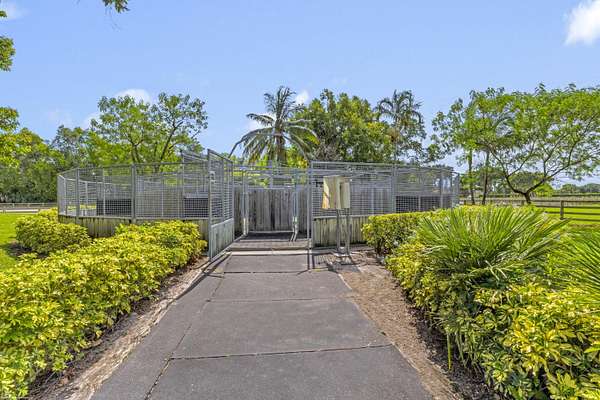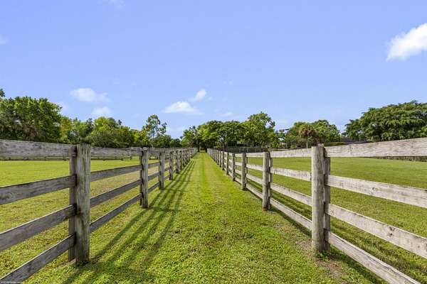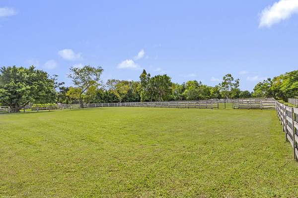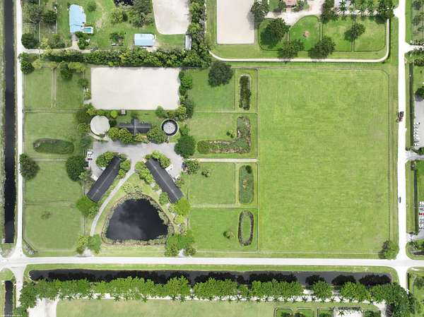 Exceptional 19.83-acre equestrian estate, just a short ride to the Wellington International show grounds and National Polo Center. This spacious equestrian compound is a testament to dedicated equestrian pursuits, offering an unparalleled training environment with two mirror-image barns housing 32 stalls.The expansive grounds feature a new 150' x 300' all-weather arena with a covered viewing area, a sprawling 7-acre grass riding field, a round pen with all-weather footing, and a Kraft five-horse walker. Nine oversized grass paddocks provide ample room for turnout, a true luxury in Wellington.The property also includes two 3-bedroom 1 bath staff apartments and a separate owner's lounge, ensuring comfort and privacy.