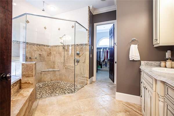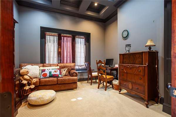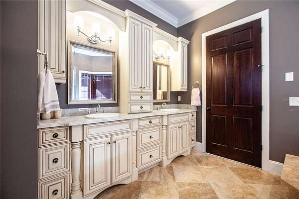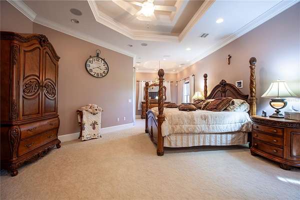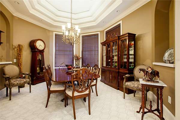 - Built-In Features, Ceiling Fans(s), Chair Rail, Coffered Ceiling(s), Crown Molding, Dry Bar, Eat-In Kitchen, High Ceilings, Primary Bedroom Main Floor, Solid Surface Counters, Solid Wood Cabinets, Split Bedroom, Stone Counters, Tray Ceiling(s), Walk-In Closet(s), Window Treatments