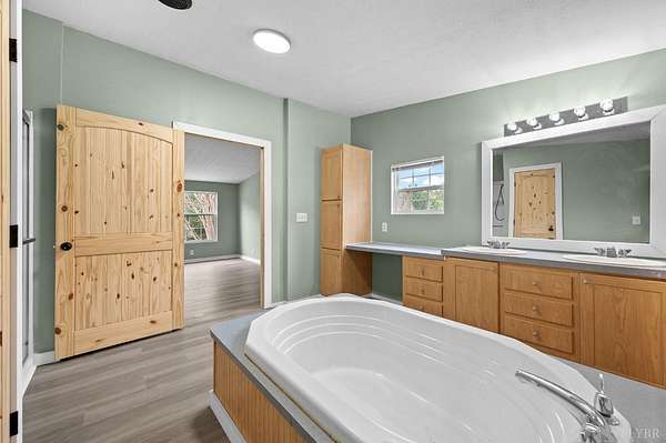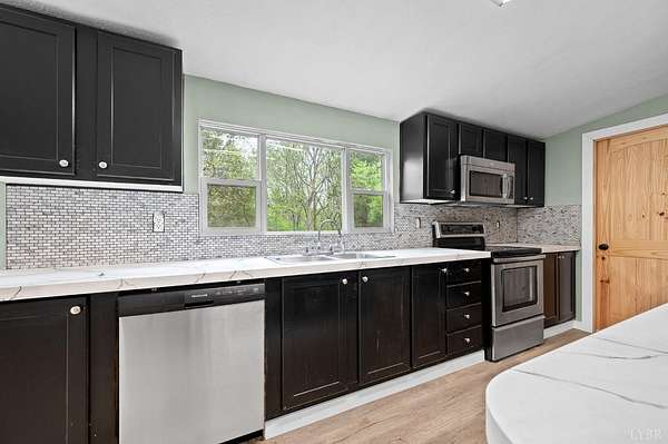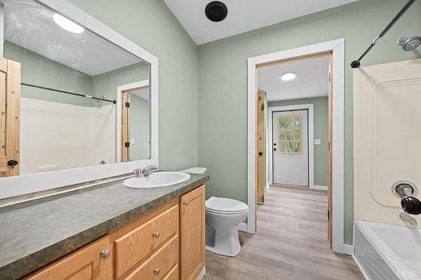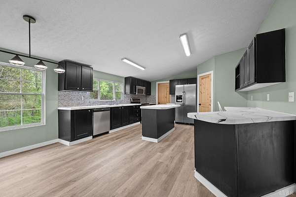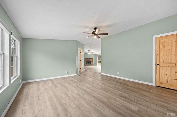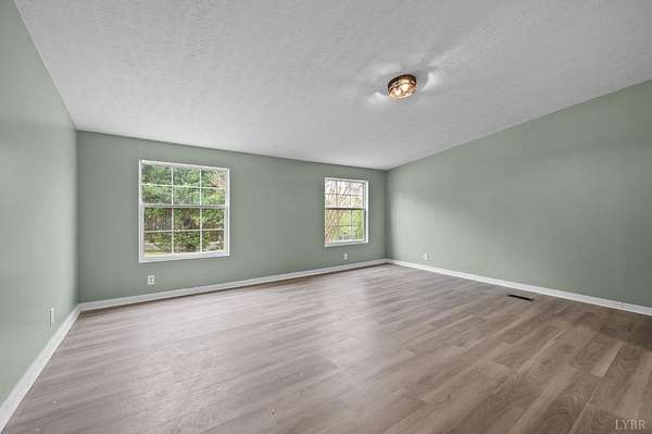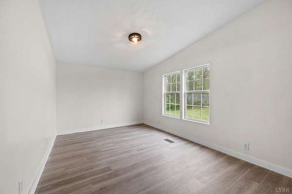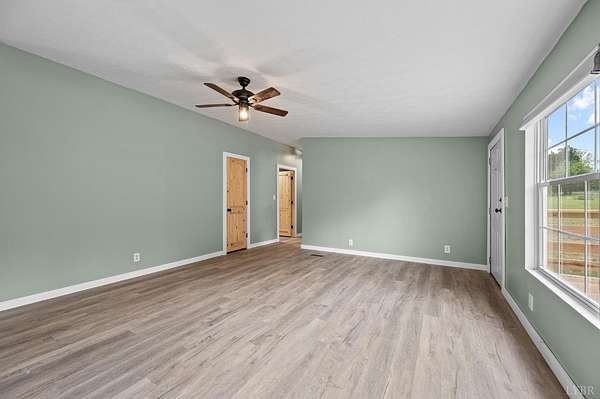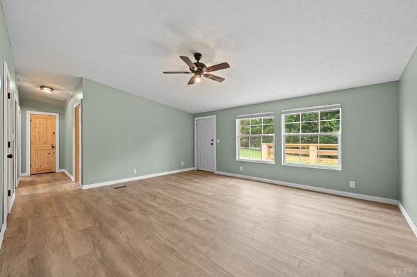 Move-in ready and offers the ease of one level living. This spacious home is nestled on 5.87 beautiful acres in sought after Bedford County. The open floor plan features large bedrooms, gorgeous new LVP flooring, fresh paint throughout, and a newly updated shower. The kitchen is designed for both function and gathering, complete with an island, pantry, abundant cabinetry, and bar seating for casual dining. Step outside and enjoy the peaceful setting, perfect for gardening or creating your own mini farm, with land that has never been treated with chemicals or pesticides. A large pole barn with a room above adds incredible versatility for storage, hobbies, or workspace. Enjoy privacy, space, and modern updates all in one. Schedule your private tour today!