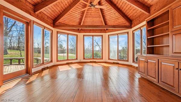 - Beamed Ceilings, Bookcases, Breakfast Bar, Cathedral Ceilings, Ceiling Fans, Crown Molding, Double Vanity, Granite Counters, Jetted Tub, Soaking Tub, Track Lighting
