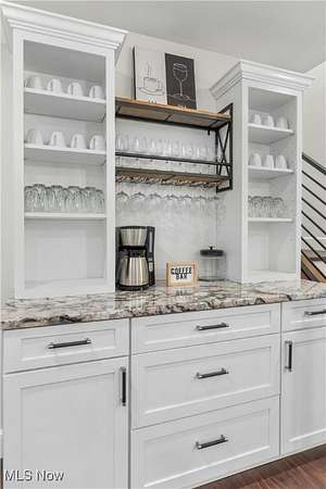 - Beamed Ceilings, Breakfast Bar, Built In Features, Ceiling Fans, Crown Molding, Double Vanity, Dry Bar, Eat In Kitchen, Granite Counters, High Ceilings, His And Hers Closets, In Law Floorplan, Kitchen Island, Multiple Closets, Open Floorplan, Pantry, Primary Downstairs, Recessed Lighting, Soaking Tub, Wet Bar