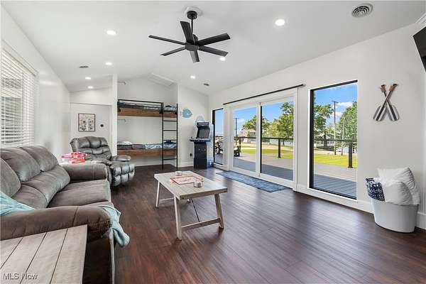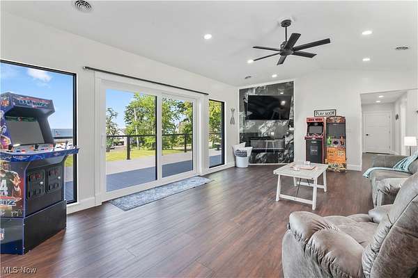 Welcome to your dream retreat on the shores of Lake Erie-a rare opportunity to own a fully custom luxury estate in one of Geneva's most coveted lakeview neighborhoods, set on 1.69 acres of beautifully landscaped grounds with two separate driveways and a spacious 3-car garage Located at 5111 North Myers Road, this stunning residence features brand-new, top-of-the-line construction that combines architectural sophistication with effortless comfort. Just a short golf cart ride to Geneva-on-the-Lake and minutes from Ohio's premier wine country, every day here feels like a vacation. This remarkable home offers 6 spacious bedrooms and 6 spa-inspired bathrooms, making it ideal for large families or multigenerational living. Inside, you'll find soaring cathedral ceilings, wide-plank luxury flooring, custom closets, and hand-crafted finishes throughout. The gourmet chef's kitchen features top-of-the-line THOR appliances, a massive island, and a pass-through window for seamless indoor/outdoor entertaining. Each living space is warmed by porcelain-faced fireplaces and framed by breathtaking views of Lake Erie. Upstairs, a secondary lounge provides a cozy retreat with arcade games, built-in bunks, and access to a sweeping second-story balcony overlooking the lake-perfect for morning coffee or evening wine under the stars. Every bedroom offers peace and privacy, while spa-like bathrooms deliver everyday indulgence. Outside, enjoy over-the-top amenities including hand-stamped concrete patios, an 8-person Jacuzzi, DuxxBak waterproof decking, and a cedar-covered front porch. Host summer gatherings, holiday dinners, or simply relax as you watch the sun dip into the lake from your private oasis. This home is more than a place to live-it's a legacy. A statement of taste, comfort, and connection. Built for those who value beauty, privacy, and year-round luxury, this one-of-a-kind residence is your front-row seat to the best of Lake Erie living.