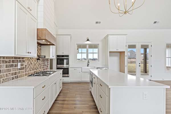 THIS ONE WILL SELL ITSELF! Welcome home to this beautifully designed one-story modern farmhouse located in the highly sought-after Estates of Grays Valley. Situated on a spacious 1.6-acre corner lot, this home offers the perfect blend of luxury, comfort, and functional living -- and it is 100% complete and move-in ready! This thoughtfully designed 4-bedroom, 3.5-bath home with a 3-car garage features an open-concept layout with 11-foot ceilings and elegant 8-foot doors throughout, creating a bright and airy feel from the moment you walk in. The heart of the home is the stunning kitchen, dining, and living room combination, highlighted by vaulted ceilings and perfect for entertaining. The gourmet kitchen boasts custom cabinetry, quartz countertops, double ovens, a walk-in pantry, and a stylish coffee bar or wine bar. A split-bedroom floor plan provides both privacy and functionality. One side of the home offers three bedrooms, jack & jill bath & Quarter bathroom with walk-in shower, while the private primary suite is tucked away on the opposite side. The luxurious primary retreat includes a spa-like bathroom with a massive walk-in shower featuring a rain head, stand alone tub, double vanities w/makeup area and an oversized walk-in closet conveniently connected to the laundry room. Additional functional spaces include a mud area, spacious laundry room, half bath for guest and plenty of storage throughout. Enjoy outdoor living from the large covered front porch or relax on the covered back patio, perfect for enjoying the peaceful surroundings. Additional upgrades and amenities include: Quartz countertops throughout, Tankless water heater, Exterior soffit lighting, Upgraded lighting package & All hard surface flooring (no carpet). This exceptional property offers modern farmhouse charm, high-end finishes, and plenty of space to spread out, all within one of the area's most desirable subdivision. Schedule your private showing today before this one is gone!