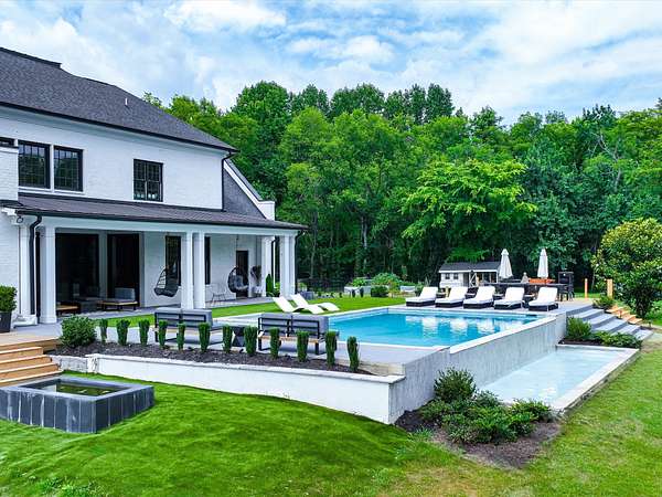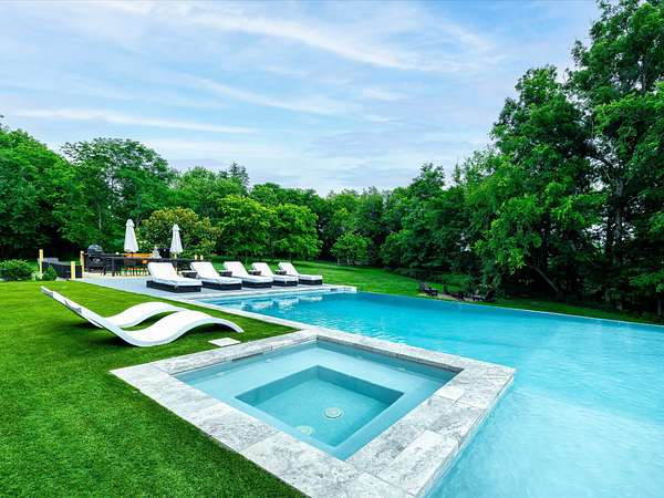 Welcome to your private retreat on over 5 acres of beautifully landscaped grounds! This stunning 7-bedroom, 5-full bathroom home has been meticulously updated & offers luxurious living spaces both inside & out. Step inside to discover a fully finished basement boasting 2 additional bedrooms, cozy fireplace, & wet bar, perfect for entertaining guests or enjoying quiet evenings with family. The main floor features spacious living areas with tasteful finishes & ample natural light throughout. Outside, indulge in the ultimate relaxation with an infinity pool with a hot tub overlooking the expansive property. Enjoy alfresco dining & entertaining in the outdoor kitchen area, or unwind on one of the two new decks or the covered front porch. The property includes four board fencing & a run-in shed, ideal for horses/livestock.This exceptional residence offers a level lot w/plenty of room for outdoor activities & is conveniently located for privacy while being just a short drive from amenities.