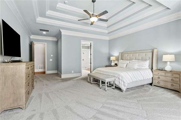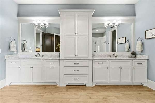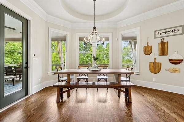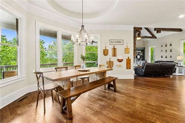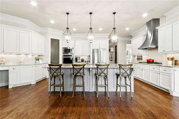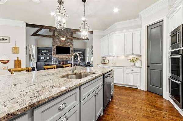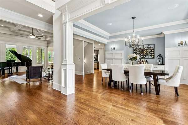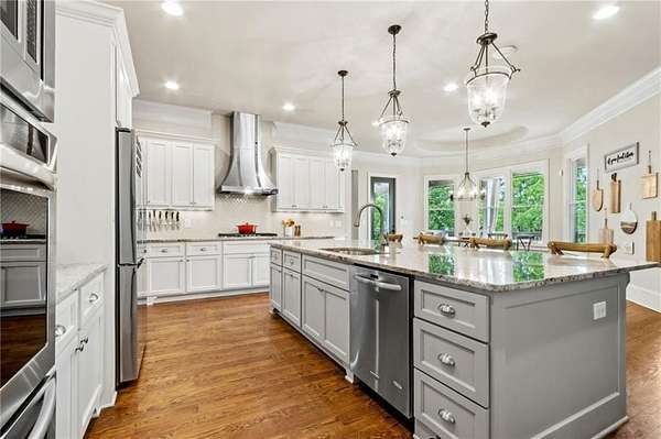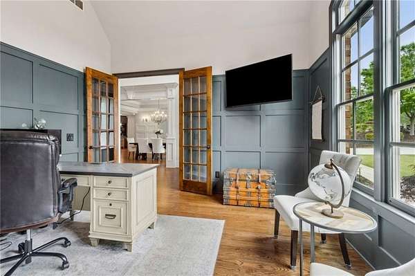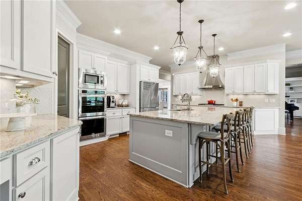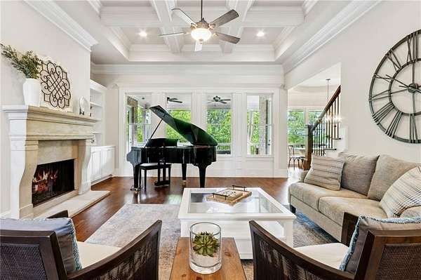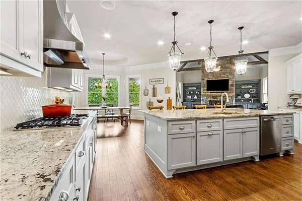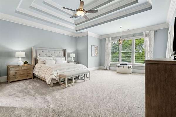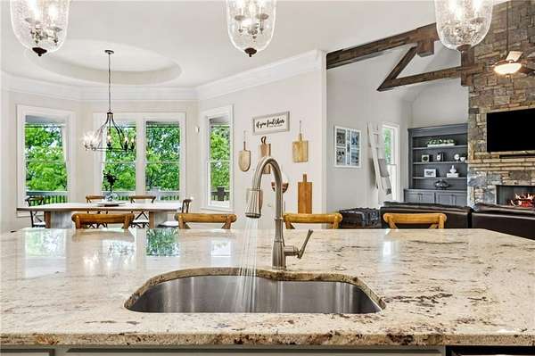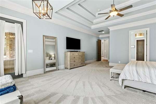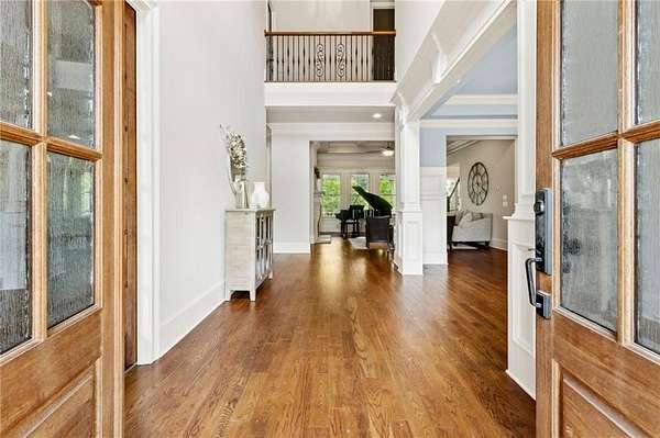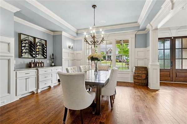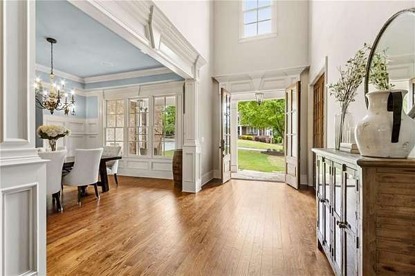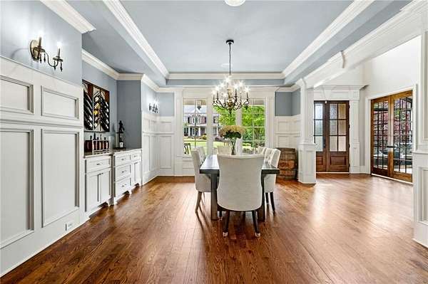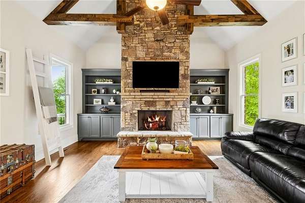 Back on Market nothing to do with house! Gorgeous custom estate home in the gated Edinburgh, Jack Nickolas Bear's Best golf community. Designer and builder touches are evident throughout the home, making it truly unlike any other. Located on just under 2 acres with breathtaking views from the expansive double decks, all along the tree line, creates a sense of peace and privacy. The inviting rocking chair front patio leads you through double doors into a gracious, flowing floor plan; from the high ceilings to the extensive trim details in every room. The main level features an oversized office with beautiful views of the front yard and board-and-batten wall paneling. The formal dining room features a custom, built-in butler's pantry. Retreat to the main level owners' suite, complete with a sitting area, tray ceilings, a door to the rear deck, a spa-like bathroom featuring a freestanding tub and floor-to-ceiling cabinetry, as well as an oversized custom closet. The formal living room has it all: built-ins, coffered ceiling, cast stone-like gas fireplace, and views through the private back deck into the lush woods. The bright gourmet kitchen is complete with a gorgeous steel hood, abundant cabinetry with inserts and drawer organizers, oversized island, coffee bar, large walk-in pantry, and breakfast room. All of this, overlooking the oversized yet cozy, eye-catching keeping room with a vaulted wood-beamed ceiling, stone fireplace, and built-in bookcases. Tucked away are two 2-car garages and a large driveway turn-around with two Tesla chargers and extended height doors. The garages flow through the mudroom, complete with laundry room and powder room. Head upstairs to 3 en-suite bedrooms plus a media/ study room with views for miles. The terrace level is an entertainer's dream: a second kitchen with custom cabinetry, sink, refrigerator, wine refrigerator, microwave, and dishwasher, an over-sized game room, a designated theatre room with a high definition EPSON projector and a built-in 7.1 Dolby Digital surround sound system, two large living areas which include a family room with gas fireplace and built-ins, a powder room, as well as 2 bedrooms sharing a large double vanity, full bathroom and safe room. Venture outside to find expansive two-story decks, a fenced lush backyard, and a fire pit area. Cast music to any room or the whole house using your favorite streaming music app on the built-in stereo speaker system. Whole-house water filtration system and tankless water heaters. Commercial-grade Ubiquity internet access point/mesh system with four Wi-Fi access points throughout the house. Comcast and AT&T ready. Smart thermostats, doorbell, and automatic exterior light switches. Professional exterior landscape lighting. App-controlled permanent Holiday Lights along the roof line. Wired ADT security system. Last but certainly not least are the resort-style amenities, located in a highly rated school district, all within close proximity to everything your heart desires.