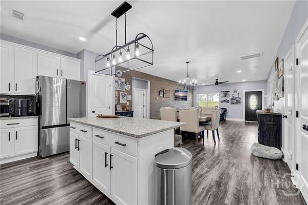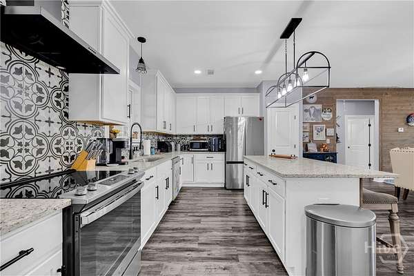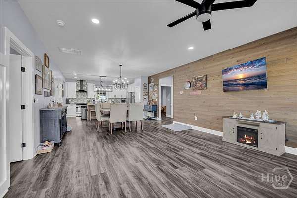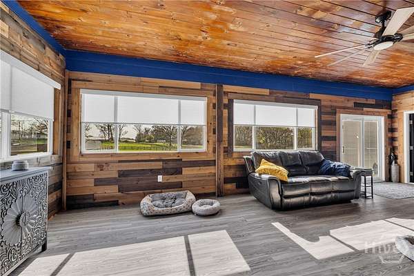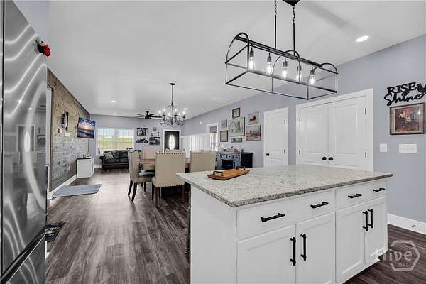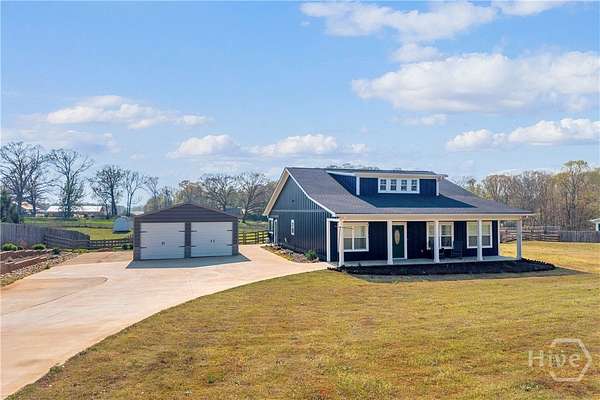 This thoughtfully upgraded craftsman ranch sits on a beautiful 1.67-acre fenced lot, offering the space, privacy, and flexibility that's increasingly hard to find. Inside, luxury vinyl flooring runs throughout the home, complementing the open, split-bedroom floor plan designed for both everyday living and entertaining. The kitchen and dining area flow seamlessly into the main living space, creating an inviting place to gather with family and friends. Just off the living area, a fully enclosed and insulated sunroom provides year-round enjoyment and the perfect place to unwind while taking in peaceful sunset views beneath the tongue-and-groove wood ceiling. The primary suite offers two generous closets with sliding barn doors and a beautifully finished bathroom with granite countertops and designer details. Throughout the home, you'll also find thoughtful upgrades including custom barn wood accents, a board and batten entry feature, updated window coverings, and a freshly painted interior. Outside, the level 1.67-acre fenced yard provides plenty of room for pets, outdoor activities, or future additions. The backyard is designed for gathering, featuring a custom fire pit connected to the back patio, while the front yard irrigation system makes maintaining the landscape easy. Conveniently located less than five miles from I-85 and just minutes from Carnesville, Royston, and local schools, this property offers the ideal balance of privacy and convenience.