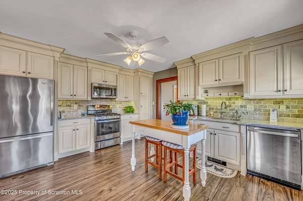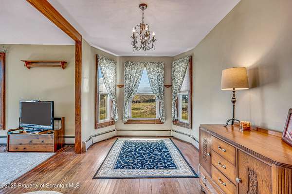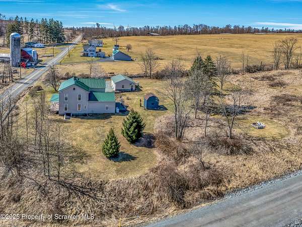 Rolling Hills- Country Roads Take Me Home. Country Farmhouse , 45+ acres. 24x40 3 bay garage. Front porch opens into spacious living & dining rooms. Continue to the up-dated French country eat- in applianced kitchen . Quartz counters. Sliders lead to the large rear deck for outdoor entertaining. First floor laundry w/slop sink.Newer .5 bath. Large first floor family room can be used as a primary 1st floor bedroom . option to use this area including the kitchette,bath, bedroom as in-law suite or rental. Continue to the upstairs hall. The 2nd floor features primary bedroom and 4 additional bedrooms. Full bath. Use one of the bedrooms as an office or exercise rm. Walk up attic. Good storage in the basement. 2 Springs on property in addition to the drilled well. Garage large enough for all your toys . Great hunting. Thinking of having horses or chickens?Room to grow. Panoramic views . Midway between Tunkhannock & Montrose.All measurements are approximate and not guaranteed