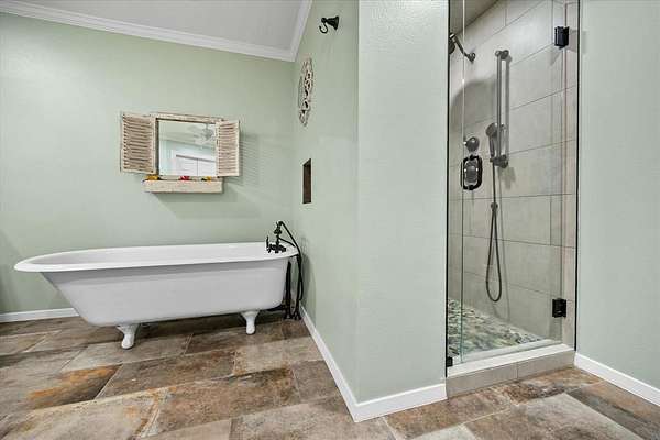 Welcome to your private retreat with this custom-built home on over 1.8 acres offering the perfect blend of luxury, comfort, and functionality. Designed with entertaining in mind, this stunning estate features an open, flowing layout that effortlessly connects the main living spaces to the outdoor resort-style patio and pool. Step inside to find bright, spacious interiors with elegant architectural details such as wood floors, recessed can lighting, crown moldings and large picture windows framing expansive views of the pool, patio, and surrounding landscape. The updated gourmet kitchen is the centerpiece of the home, boasting stainless steel appliances, granite countertops, white custom cabinetry with undermounted lighting and abundat storage and workspace. The huge family room features painted picture frame paneling, handsome wood floors, a wall of built ins, a wood burning fireplace and french doors looking out to park-like yard. An updated primary suite offers privacey. The primary bath retreat remodel consists of custom white cabinets, warm neutral tile, dual sinks, recessed lighting, a soaking claw foot tub and walk in shower. Downstairs, there is a bonus room that can be used as gameroom or home office. Enjoy seamless indoor-outdoor living as the great room opens to an oversized covered patio, perfect for dining al fresco, lounging by the sparkling pool, or entertaining under the stars. With its generous space and thoughtful design, this home is made for memorable moments with family and friends.