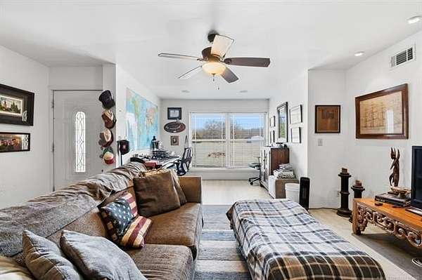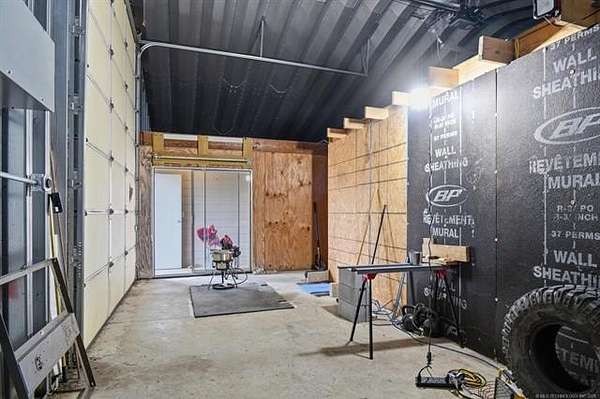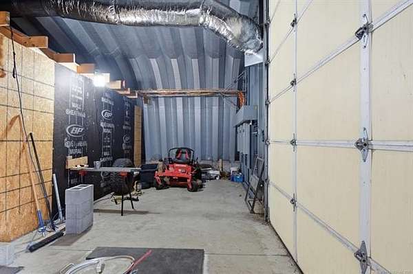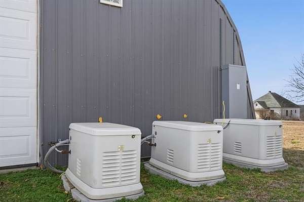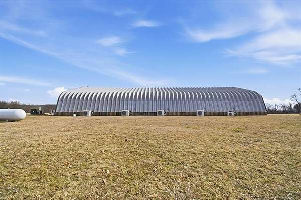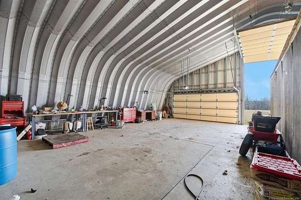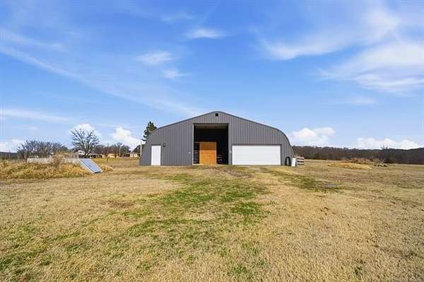 Wonderful property on just under 5 ac. Situated on a dead end street with no through traffic. Horse permitted. Beautiful views of woods/bluff behind the property. Barndominium has 1100 sq ft (according to the tax record) of living space with two bedrooms and one bath, kitchen and living area. The entire building is 60X100 (6000 sq feet). The electrical is THREE-phase, 600 amp with both 110 and 220. Building structure is steel framed with wood buildout for the living space. Overhead doors are 12X14 and 7X16. Outdoor 12-person safe room. Barbed wire fenced on east and north sides. Also on property is a 12X30 barn that could be used as a stable or extra storage. FANTASTIC area for your build site for new construction. Live in the barndo while you build! Perfect spot to run your business and live on site.