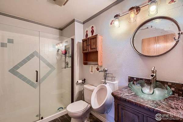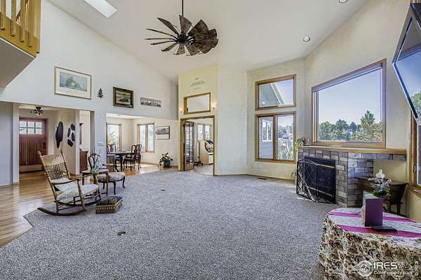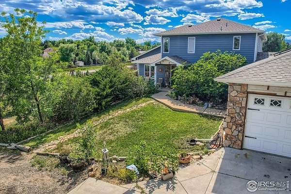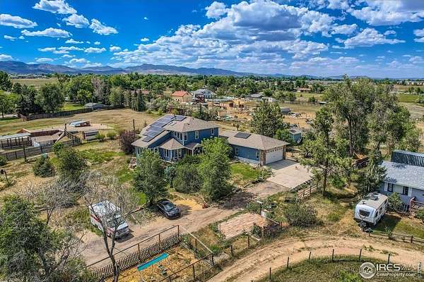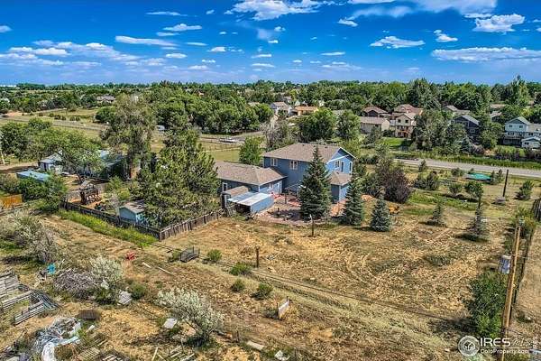 Versatile 1.5-acre retreat with stunning mountain views, no HOA or Metro Tax District, and rare FA1 zoning-bring your horses, goats, or chickens! Only 5 minutes away from I25. This 5-bed, 3-bath home offers true multi-generational living with a fully finished walk-out basement featuring a private entrance, full kitchen, family room, 2 bedrooms, and 3/4 bath-ideal for extended family or rental income. The light-filled great room features soaring ceilings, picture windows framing the Rockies, and a gas fireplace. The updated kitchen impresses with quartz counters, farmhouse sink, wall ovens, gas cooktop island, and two-tone cabinetry. The main level includes 1 bedroom and full bath, while the upper level offers 2 bedrooms, a loft, and a full bath. Enjoy the outdoors from the spacious upper deck or shaded patio below. Additional highlights include owned solar, a newer roof, newer HVAC system, an oversized garage, RV parking, and mature landscaping. A truly flexible home for modern Colorado living.